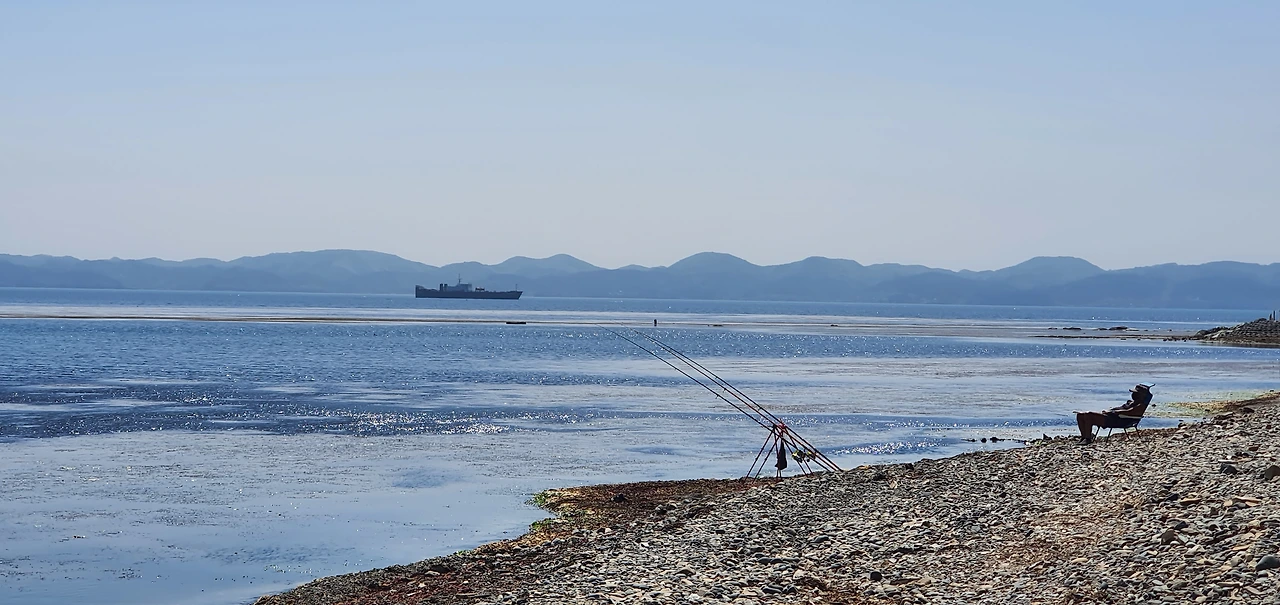 헤밍웨이가 쓴 '노인과 바다'에서, 노인은 84일째 고기를 잡지 못하고 여전히 빈손이다. 스스로 행운의 숫자라 믿는 85일째 되던 날, 큰 바다로 나선 노인은 사투(死鬪) 끝에 청새치를 낚는다. 작품 속 노인은 염원하던 대물(大物)을 손에 넣었지만, 며칠간이나 지켜보았음에도 눈앞 노인의 낚싯대엔 그 흔한 입질조차 한번 오지 않았다. 민망한 마음이 들었을까, 노인은 다가 선 낯선 이의 존재를 분명 벌써부터알고 있었음에도 한 번도 눈길을 주지 않았다. 하지만 작품 속 노인에게 소년이 확고한 믿음을 가졌듯이, 나 역시도 이 노인에게서 풍기는 뭐라 표현 못할 노회(老獪)함에 이미 압도되어 있다. 노인은, 이 한적한 어촌 마을 바닷가에서 운 좋으면 봄 도다리 몇 마리라도 건질 수 있기를 바라며 그저 세월을 낚고 있었을지 모르지만 그런들 어떠랴! 이 따뜻한 봄날에, 내 눈에 포착된 프레임(frame) 속으로는 노인마저도 바다 풍경과 어울려 하나 된 채, 그야말로 물아일체(物我一體)의 보기 드문 진경(珍景)을 그려내고 있다.