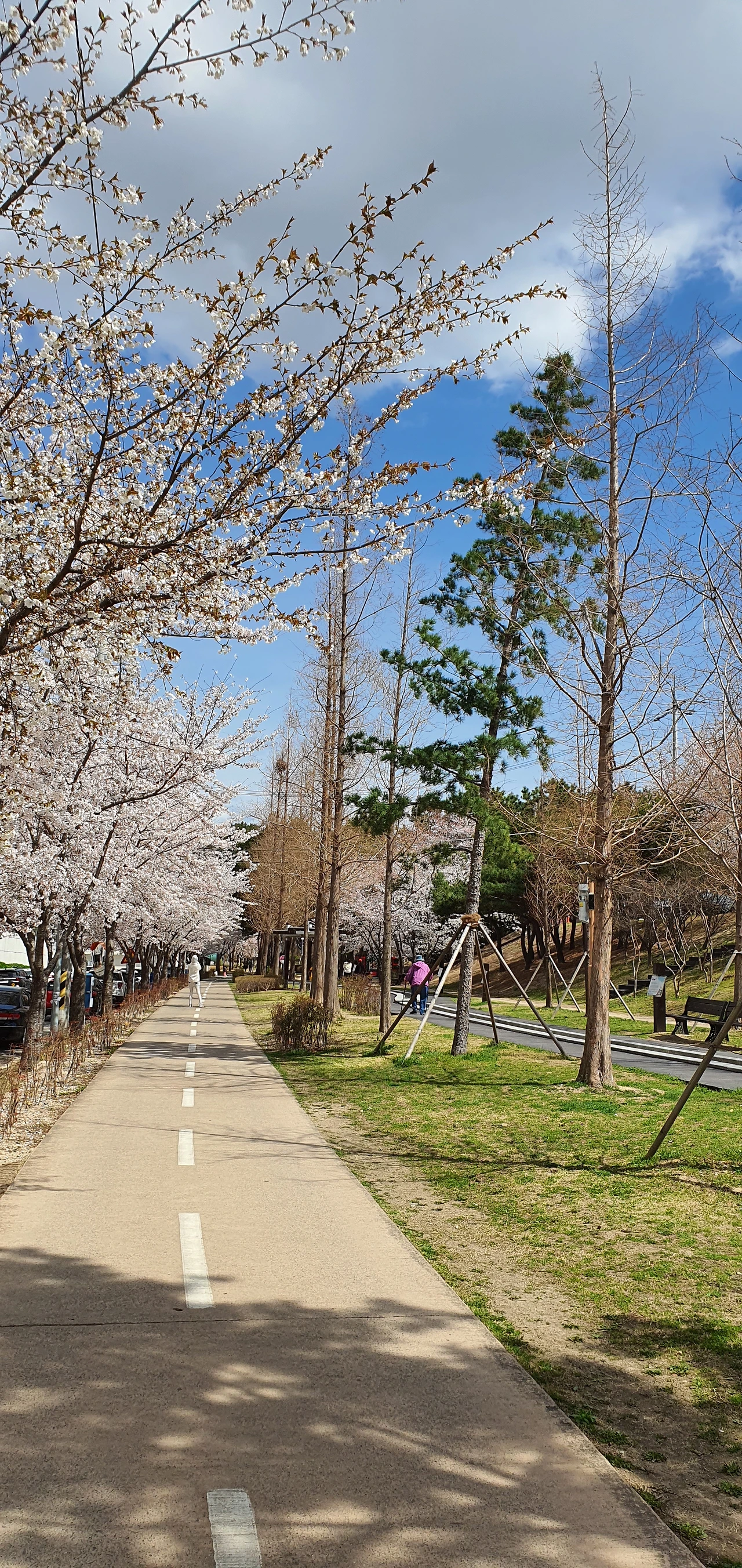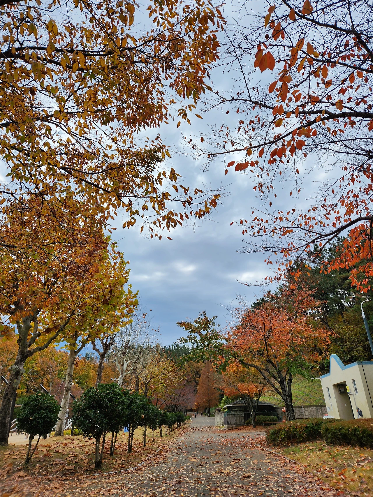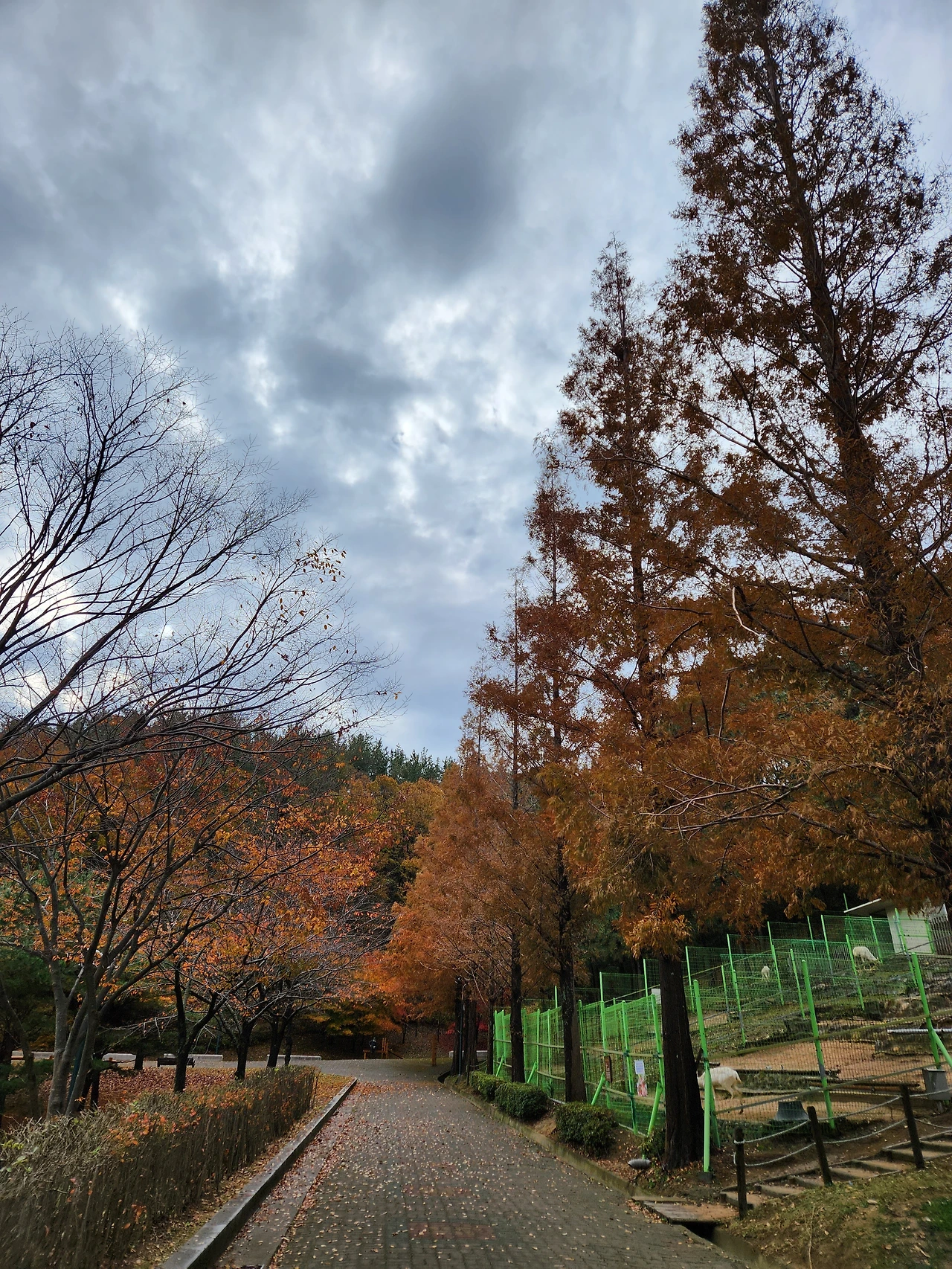 공원 광장을 벗어나 놀이공원과 동물원이 있는 곳으로 발걸음을 돌렸다. 주변에, 가볍게 운동할 수 있도록 체육시설도 갖추고 있어 평소 주부들과 노인들이 즐겨 찾는 곳이다. 길 양쪽으로 비록 끝물이긴 하나 단풍이 절정은 이루고 있었는데, 지난봄 이 길을 따라 오르던 순간이 문득 생각났다. 그땐 사잇길을 따라 벚꽃이 한창이었는데, 온갖 자태(姿態)로 화려함을 자랑하던 벚나무들이 그새 단풍이 든 것이다.