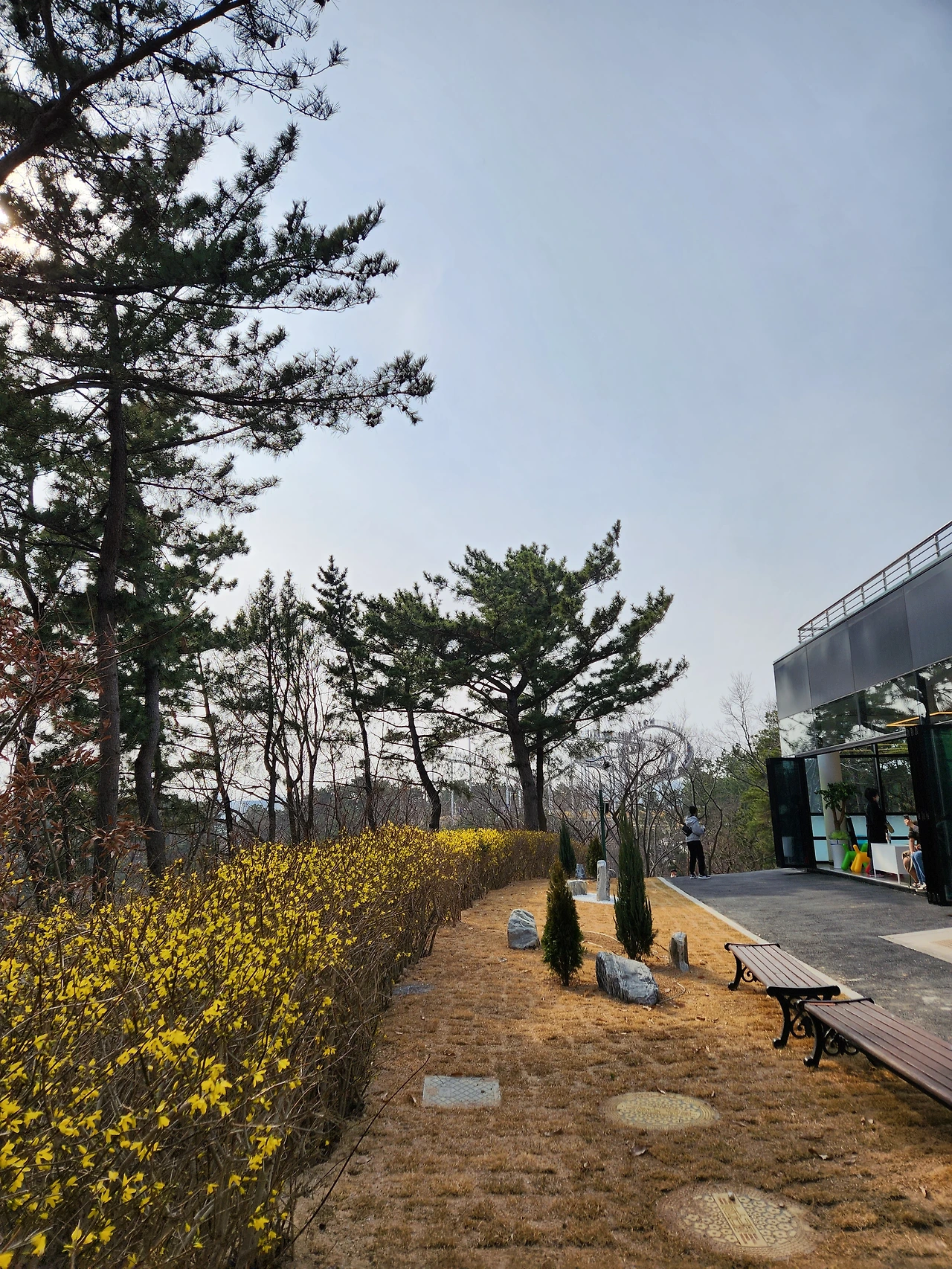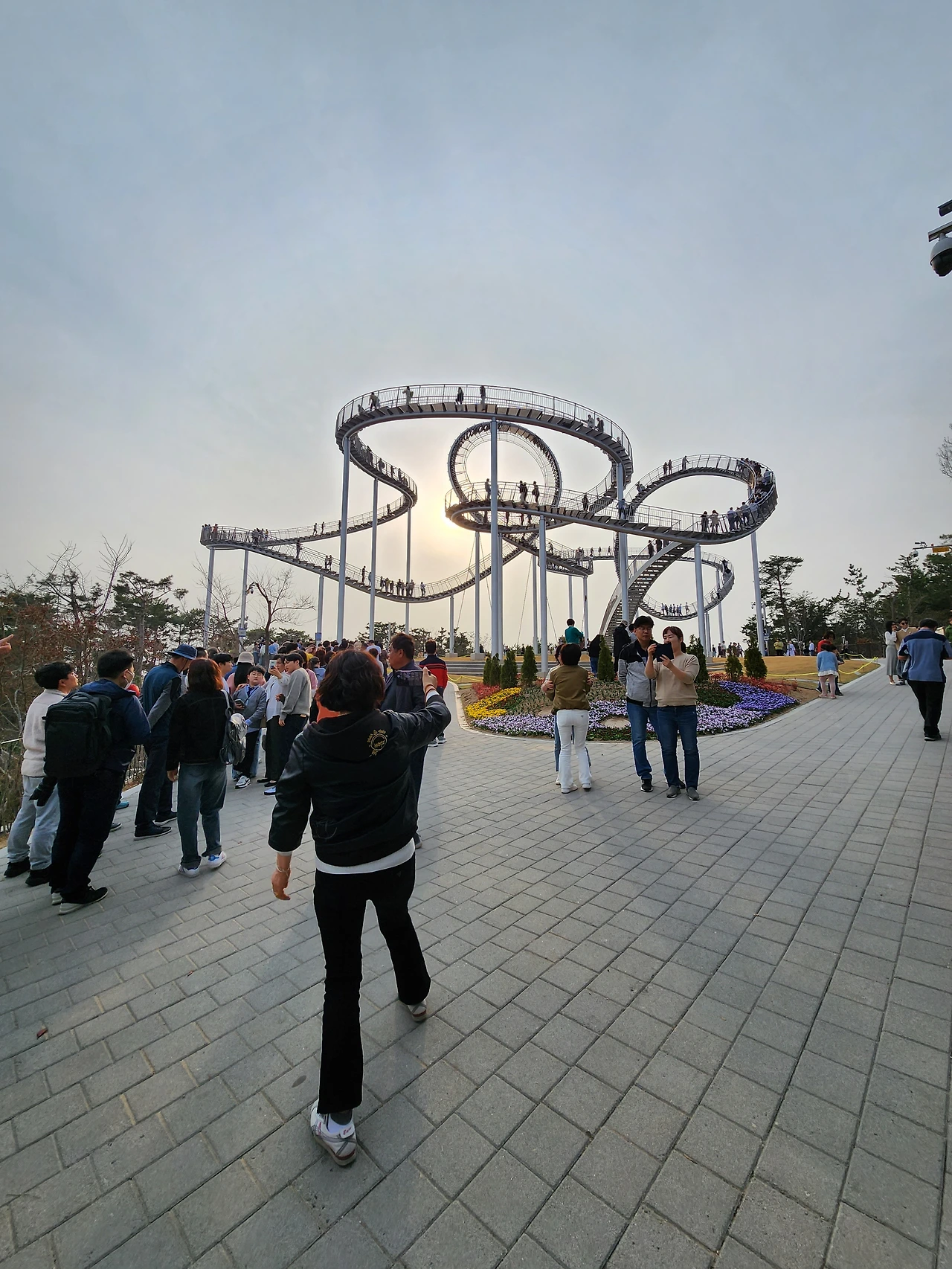 걷기보다는 야트막한 산이라도 오르는 게 살 빼기에는 훨씬 효과적이라는 것을 지난 며칠간 환호공원 능선을 오르락내리락하고 나서 깨닫게 되었다. 오늘은 종아리 근육이 조금 당겨서 이전처럼 바닷길이나 걸을까 망설이다가 공원 능선으로 이어진 계단 입구에 이르러 마음을 고쳐 먹었다. 주말이 시작되는 날이니 능선이 이어지는 곳에 있는 스페이스워크가 몹시 궁금했다. 벌써부터 공원 공영주차장은 빈자리 하나 없을 만큼 만차(滿車)였기 때문이었다.