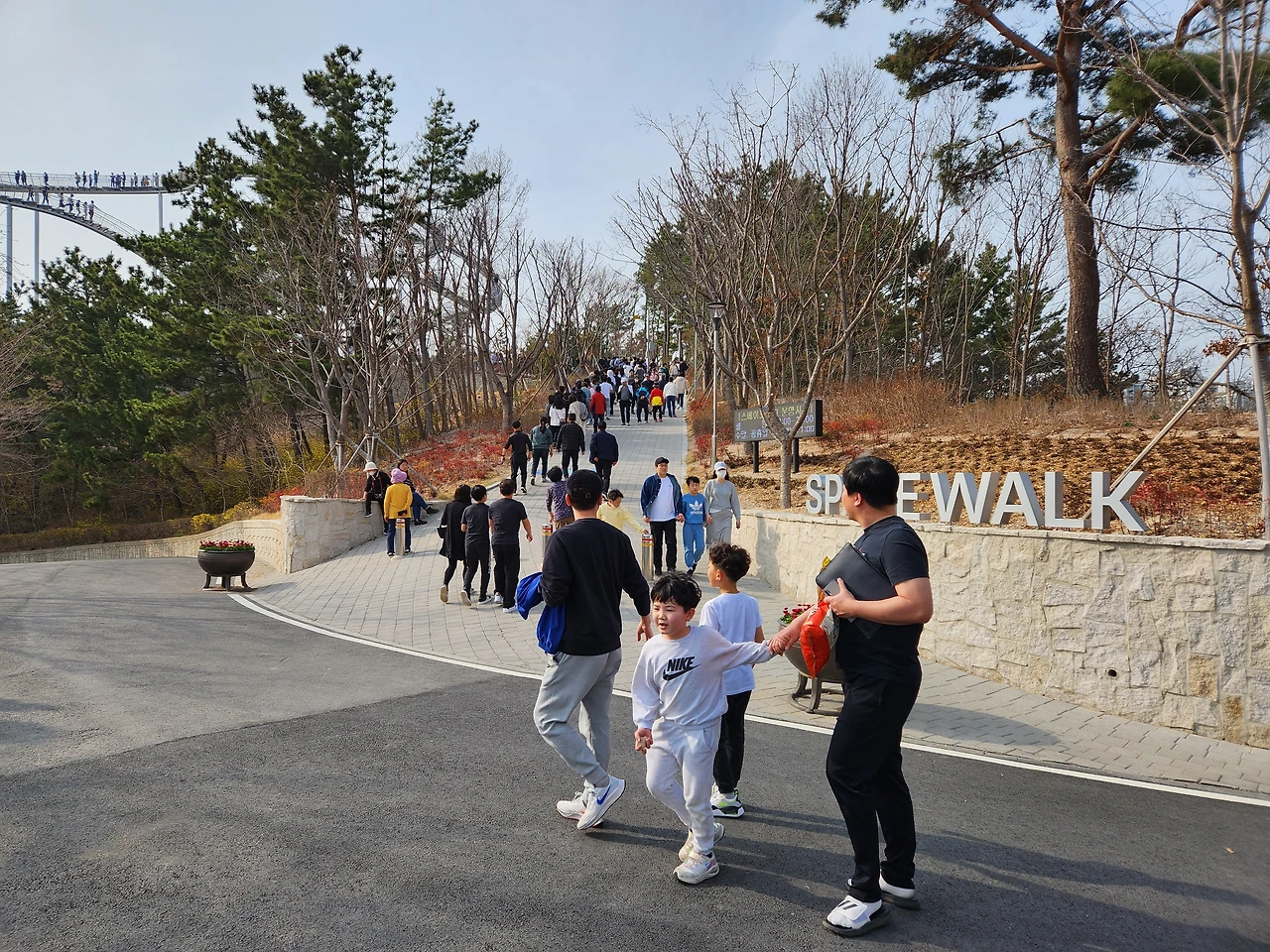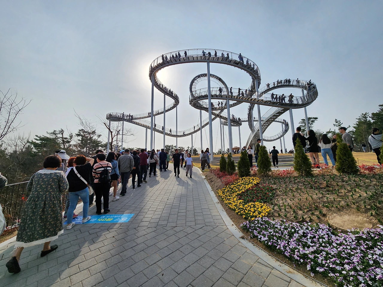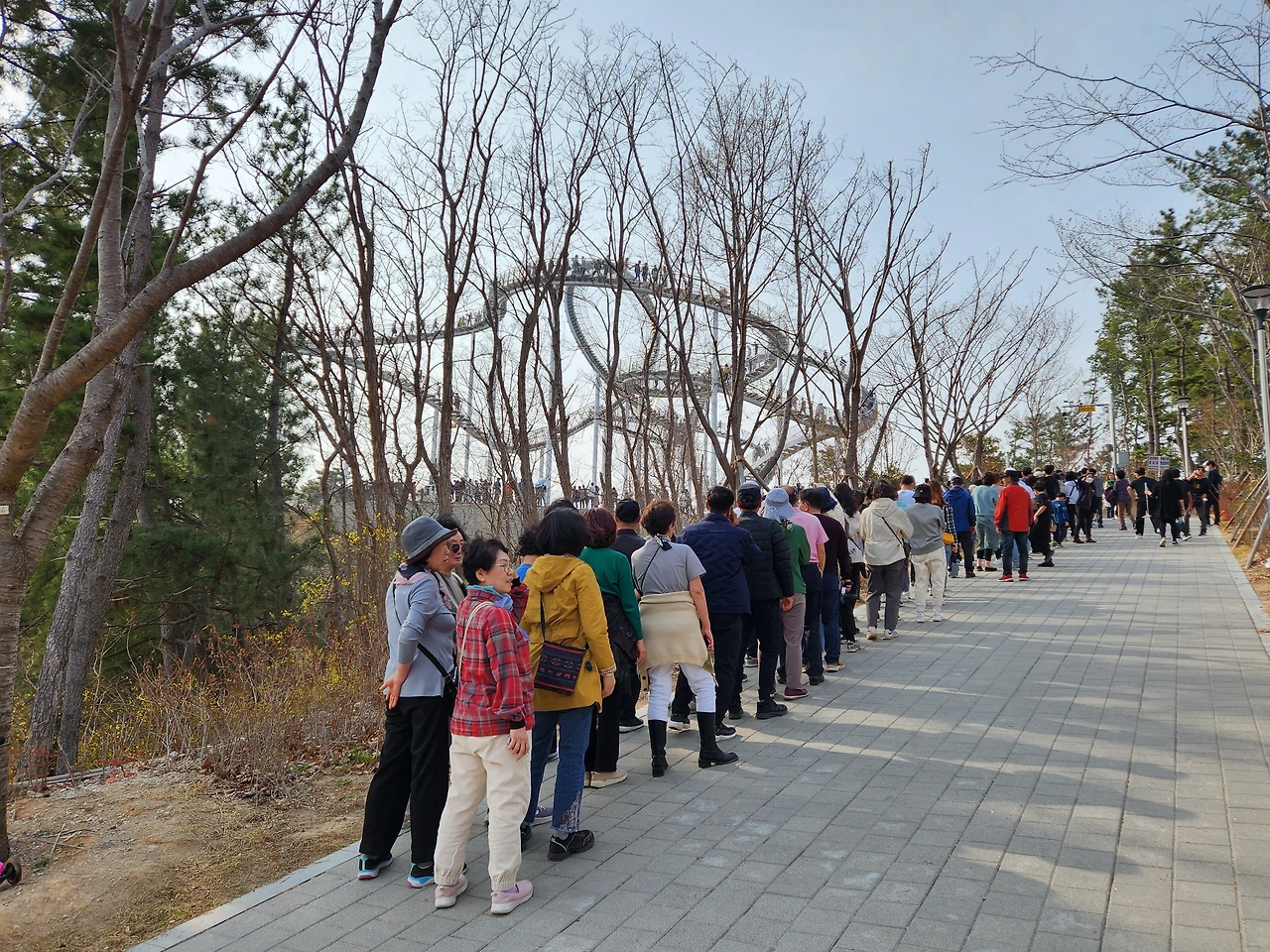 스페이스워크 주변은 이미 짐작했었듯 인산인해였다.사람들의 옷차림은 한결 가벼웠고, 표정은 제각기 차려입은 옷 색상만큼이나 화사하고 밝았다. 대기열은 스페이스워크로 올라가는 비탈길 아래쪽부터 이어져있었지만, 미리 조바심을 내거나 이를 크게 성가셔하는 눈치는 아닌 것이 사람들 표정을 살펴보면 금방 알 수 있었다. 바야흐로, 저마다 화려한 봄나들이가 시작된 것이다.