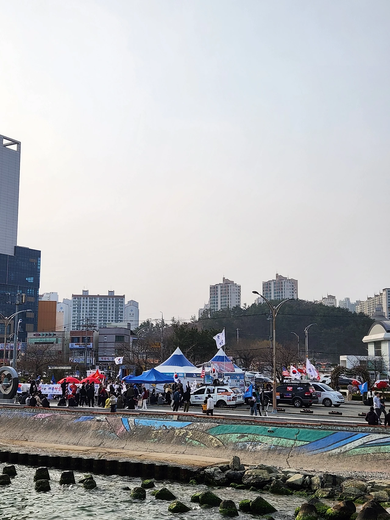 영일대 누각(樓閣)에 올라 아래를 살펴보니 정말이지 이보다 더한 갈등과 분단이 없었다. 양쪽으로 나뉜 공간에는 완충(緩衝)이나 양보, 타협과 같은 중도적 가치를 가진 말이 자리할 여지는 아예 없는 듯 보였다. 건전한 시민교육을 함양(涵養)하고 올바른 정치적 식견을 갖출 수 있도록 어려서부터 제대로 된 학교 교육이 뒷받침되어야 함이 절실하게 피부에 와닿는 순간이었다.