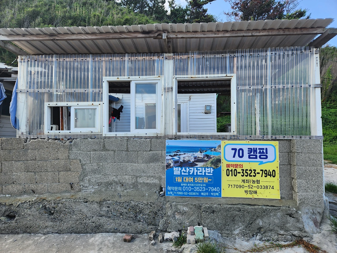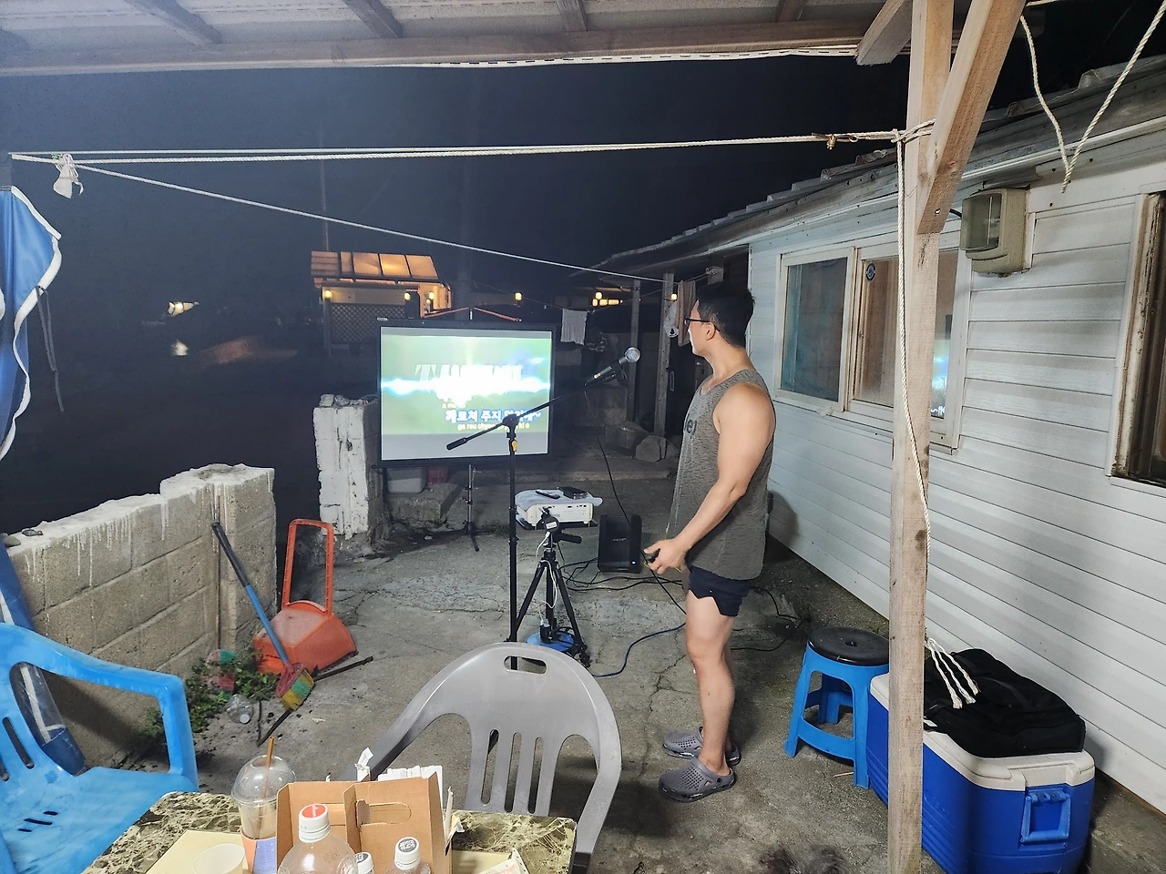 그늘막 아래에는 70 캠프를 숙소로 잡은 젊은 부부 일행이 자녀들과 함께 물놀이를 하다 잠시 휴식을 취하고 있었고, 마을 주민 몇몇은 앞바다에서 막 건져 온 전복과 뿔소라, 홍합을 안주 삼아 소주잔을 기울이고 있었다. 테이블에 둘러앉아 맥주를 마시고 있을 때, 병준이는 준비해 온 고출력 스피커로 노래방을 세팅했다. 반주기 역할은 휴대폰에 저장된 노래나 인터넷을 이용하면 충분했기에 우선 듣기에 감미로운 노래부터 틀어 주위 분위기를 달구었다.