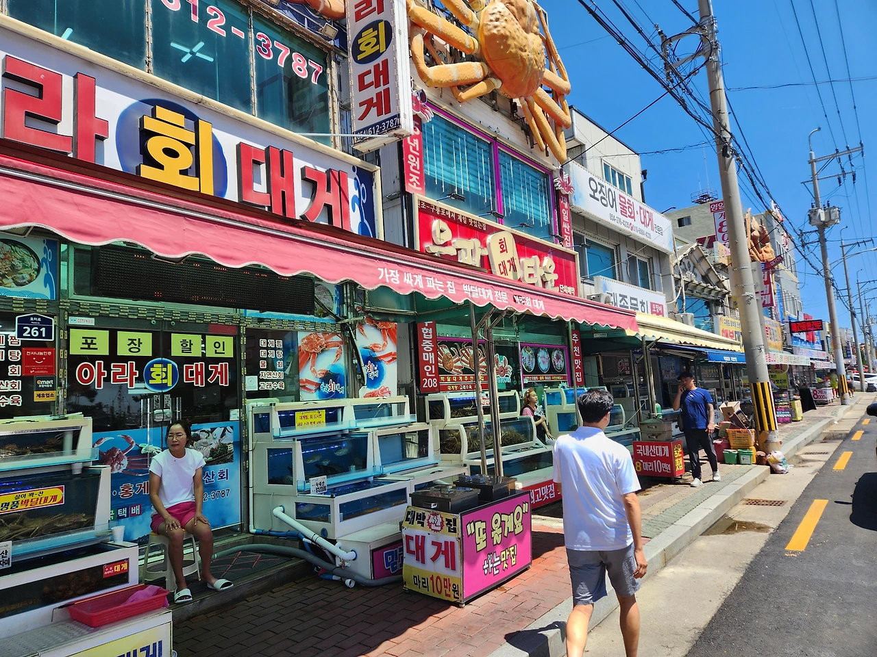 장해의 단골 가게인 태종물회는 구룡포항 공용 주차장 건너편에 있는 오징어ㆍ전복 물회 전문집인데, 구룡포를 종종 오가는 나로서도 처음 들리는 곳이었다. 요즘 들어 어획량이 확 줄어든 오징어를 전복과 함께 채로 썬 물회라기에 가격이 만만찮을 것으로 봤는데, 의외로 포항의 일반 물회 가격인 18,000원이다. 가지 수가 더 많은 정갈한 밑반찬에다 콩나물 냉국과 소면, 그리고 물회 양까지 넉넉하여 결국 밥을 반공기나 남겼다. 웬만큼 이름난 곳이라면 방문하지 않은 곳이 없을 정도로 물회를 좋아하는 나로서도, 가게문을 나서는 순간까지 풍미(風味)가 혀끝에 남아 그 맛이 특별나기는 했다.