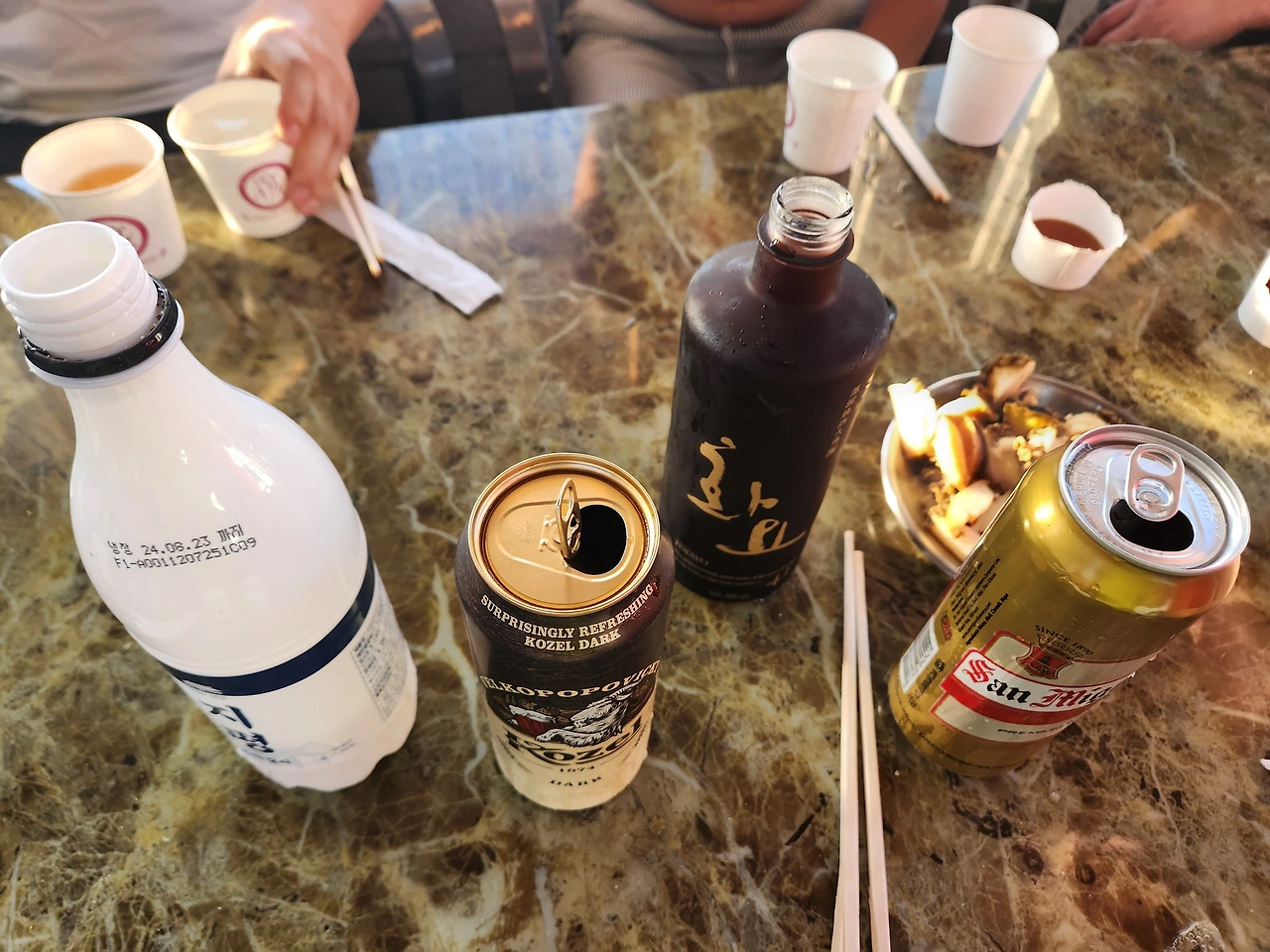 근처 편의점에서 장을 볼 때는, 각자 기호에 따라 맥주를 골랐다. 숙소 가까이엔 편의점이 없어서 미리 술을 넉넉하게 준비했는데, 차박을 좋아하는 병준이의 쿨링 박스 속 41도짜리 화요 세병과 진무의 퀄리티 높은 와인, 내가 갖고 온 18년 산 싱글몰트 글렌리벳 위스키 한 병을 먼저 감안해야만 했다. 과유불급(過猶不及)이라 했으니, 지나치게 많은 술은 밤늦은 통음(痛飮)으로 이어질 것이고 요즘 피서지에서의 아침 음주단속은 그리 드문 풍경은 아니었다. 다음날 오후 2시에 선약이 있는 진무와 이미 개학을 한 병준이가 서둘러 포항을 떠나야 했기에, 굳이 아침 음주단속을 염두에 두지 않더라도 운전하는 몸에 취기가 남아 있어서는 안 될 일이었다.