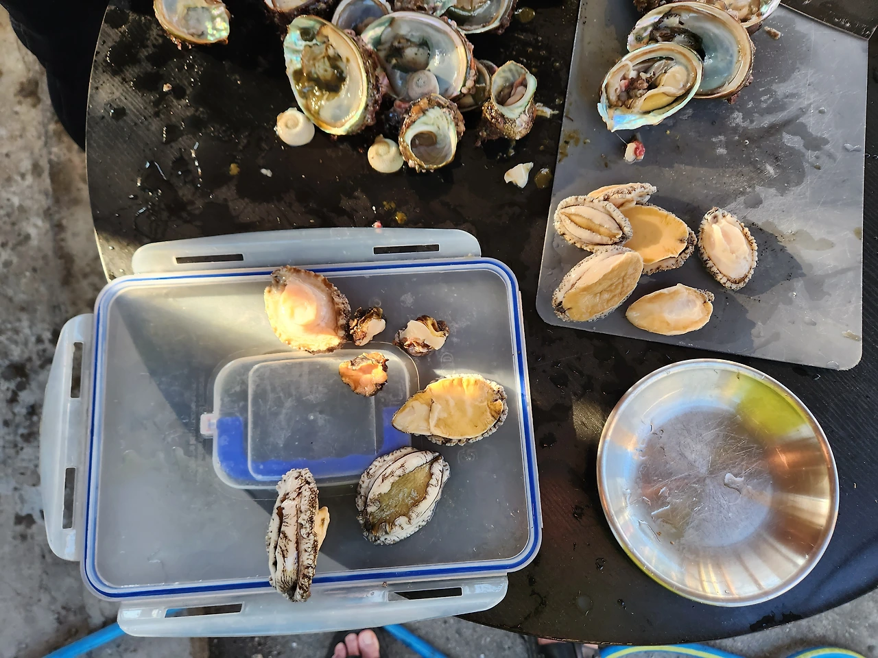 진작부터 취흥(醉興)이 올라 있던 마을 주민들로부터 노래 신청이 들어왔는데, 주로 '안동역에서' 같은 트로트를 걸걸한 목소리로 불러대곤 했다. 물질에 나선 장해가 건져 온 뿔소라를 손질해서 안주 삼아 맥주를 마시는데, 안정환이 진행하는 '푹 쉬면 다행이다'나 '안 싸우면 다행이다'에서 천렵(川獵)한 해산물을 먹을 때 보이는 출연자들의 과한 반응이 충분히 이해할만했다. 마을 주민이 노래를 부르게 해 준데 대한 보답으로 건네준 삶은 전복과 홍합은 우리가 흔히 먹는 양식 전복이나 홍합과는 비할 수 없는 없는 풍미(豊味)가 있었다.