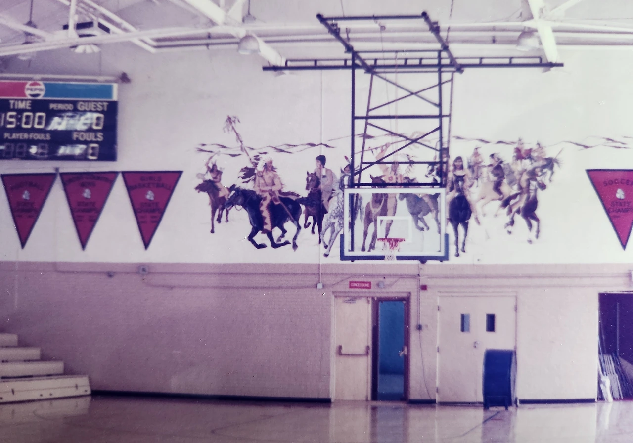 운동장 / 도서관 / 낙서로 가득한 소강당 벽면