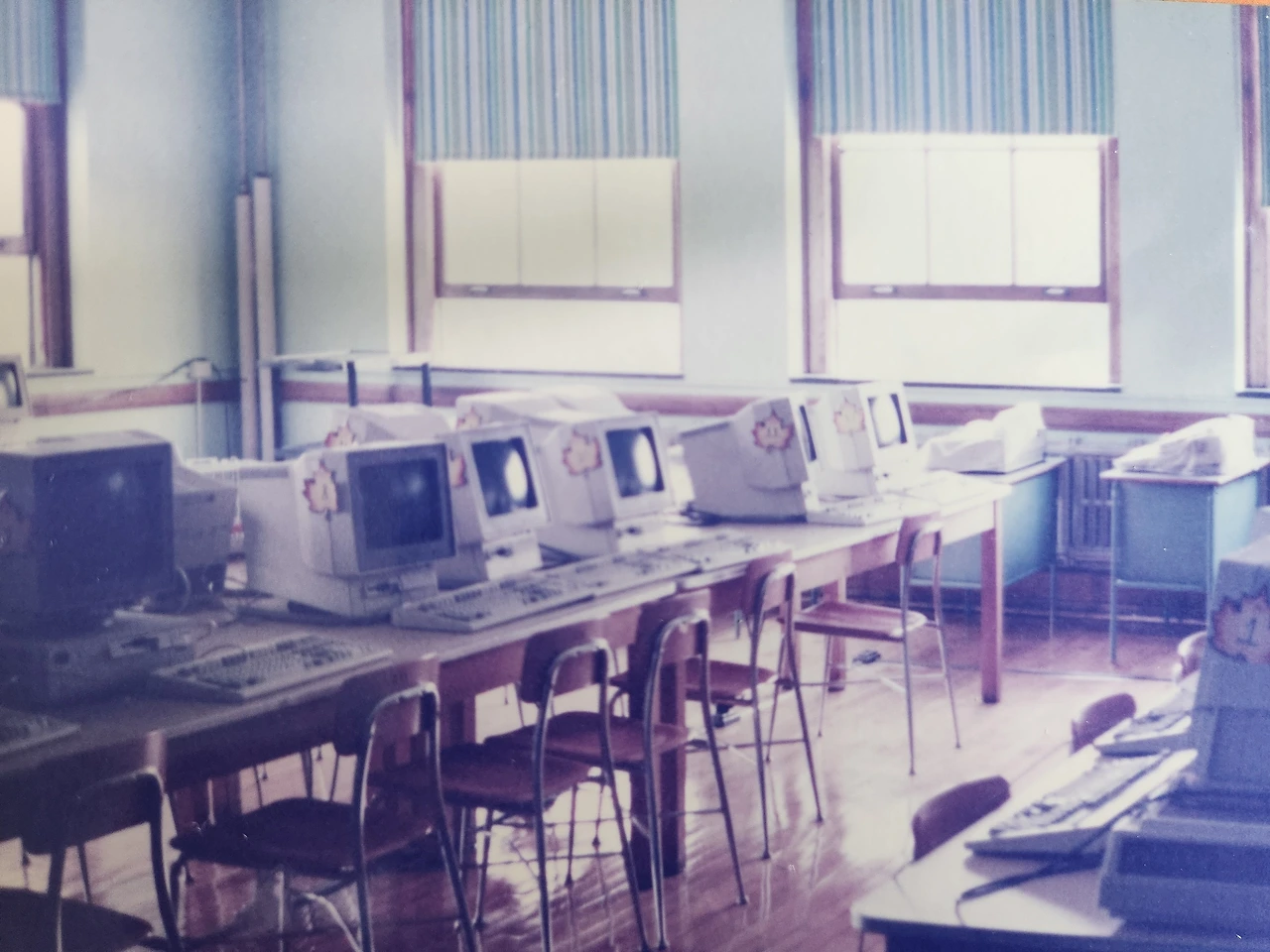 이날, 현지 고등학교의 시설을 둘러보면서 전혀 생각지 못한 상황과도 마주치게 되었다. 미국에서는 학생들이 각자 수강신청한 과목에 따라 매 교시 교과교실로 이동해서 수업을 받도록 되어 있었다. 따라서 각 교실에는 학반이 아닌 사회교과실, 과학교과실, 수학교과실, 어학실 등 교과별 팻말이 출입문에 붙어 있었다. 방학이라서 교실은 하나같이 출입문이 잠겨 있었는데, 창문이 달린 교실문은 철망까지 쳐져 있어 외부로부터의 침입이 원천적으로 차단되어 있었다. 아마도 교과교실에 설치되어 있는 다양한 시설물 때문인 듯했는데, 각 교실마다 당시로는 고가(高價)의 펜티엄 컴퓨터가 책상 당 한 대씩 비치(備置)되어 있었다.
