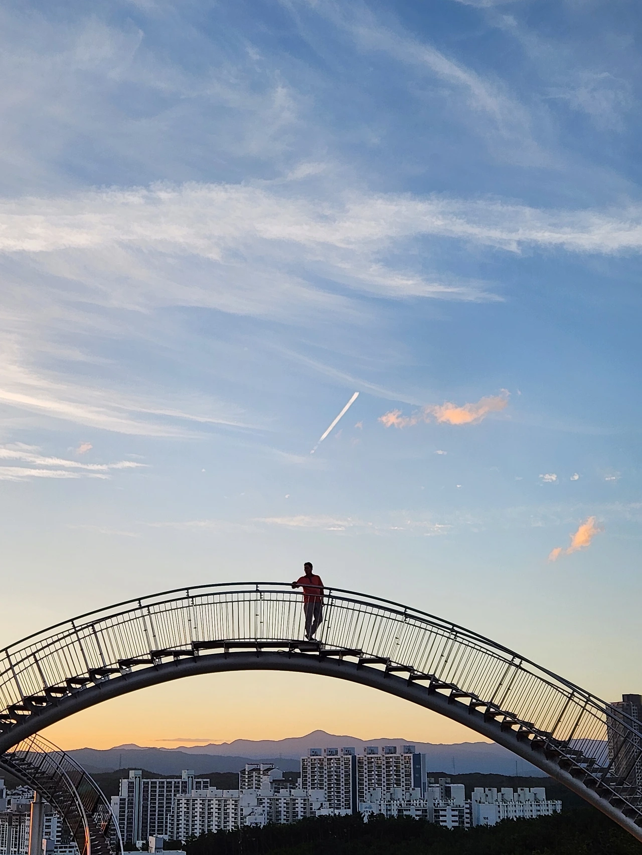 청명한 가을 하늘이 오랜만에 본색을 드러내고 있다. 새털처럼 가벼워 보이는 해맑은 구름사이로 햇무리가 돋는가 싶더니 미처 그리다 만 무지개가 살포시 모습을 드러냈다. 반쪽짜리 무지개를 보고 있자니, 마치 오늘 내가 겪은 여러 가지 일에 대한 심사(心思)가 그대로 응축되어 있는 듯했다.