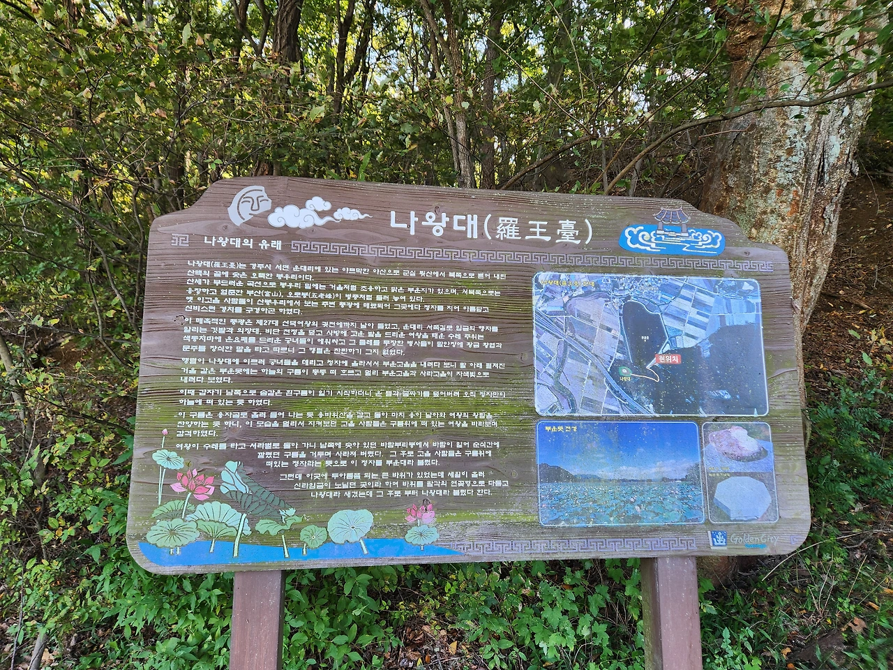 부운지를 좌측으로 돌아 나왕대가 있는 봉우리로 이어지는 오솔길은 온 여름내 자란 잡풀로 무성했다. 길섶의 인가(人家)에서 풀어놓은 강아지 두 마리가 호기심 어린 눈망울을 반짝이며 뒤를 쫓는 것이, 이놈들도 오랜만에 보는 낯선 사람이 무척 반가운 듯 보였다. 마을을 굽어보는 봉우리에도 연꽃무늬 받침대인 나왕대가 놓여 있었는데, 물론 후대에 이르러서 설화를 바탕으로 다시 만들어 놓은 것이다. 강아지의 배웅을 받으며 나왕대에서 내려와 부운지의 나머지 절반을 돌다 보면 나왕대 원석(原石)의 잔해(殘骸)를 올려놓은 또 다른 나왕대와 마주치는데, 실물이 지녔던 지난날의 형상을 미루어 짐작할 수 있었다.