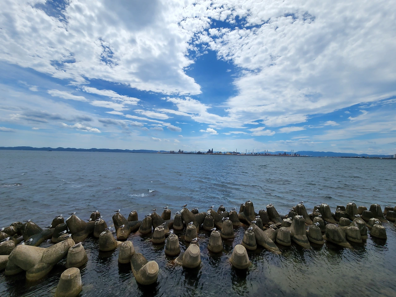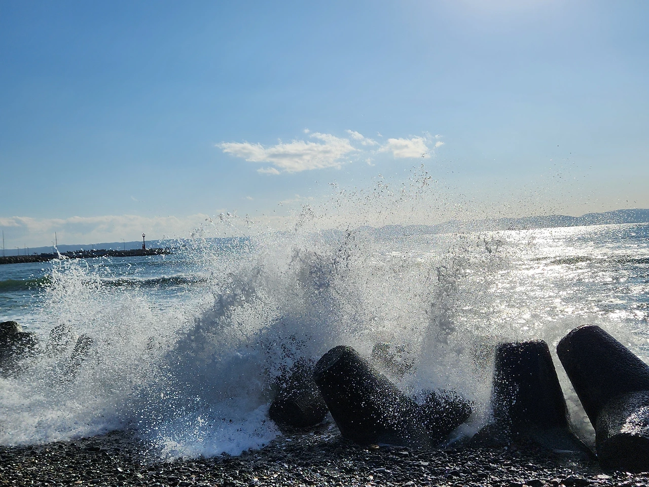 길을 걷다 되돌아보니 저 멀리 보이는 수평선 너머로 서서히 동이 트고 있었다. 가끔씩 거세게 몰아치는 바람 때문이었는지는 몰라도 크게 한번 바다가 술렁였지만, 적홍색(赤紅色) 햇살이 노을 진 먼바다는 여전히 적적했다. 방파제 가까이로 바지런히 밀려온 파도가 데트라포트 허리춤에 세차게 부딪치자 파르라니 물보라가 일었다. 발아래 아스팔트까지 축축이 젖어있는 것으로 미루어 온 밤새 바다가 몹시 거칠었던 것으로 보였다.