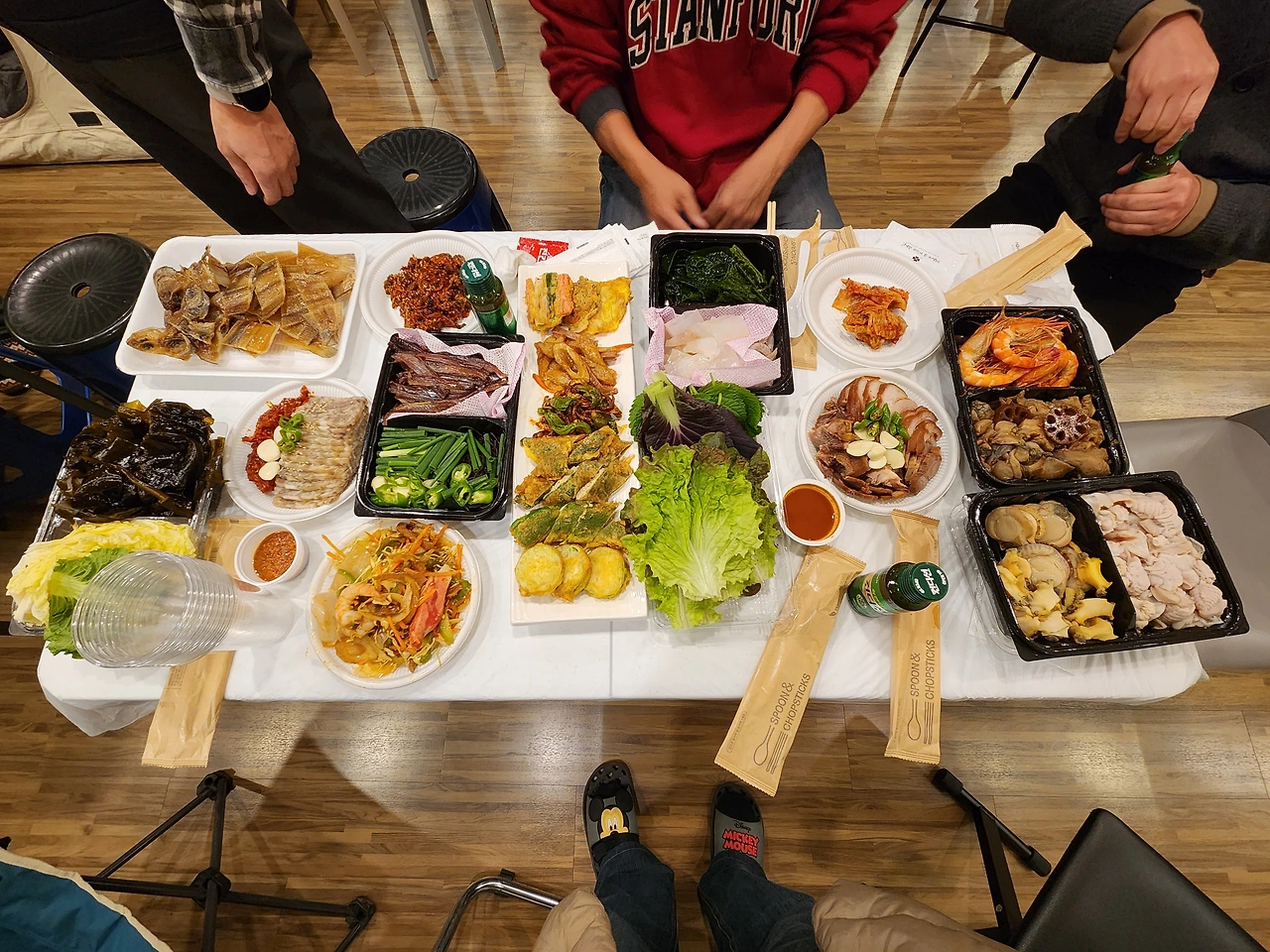 처음엔, 가까이 사는 14회 친구들끼리단출하게 모임을 가지려다 나를 위시한 모교 선생님이 가세를 하고, 다른 지역 친구들과도 연락이 닿으면서 그만 판이 커져버렸다고 한다. 이럴 때손이 바빠지는 것은 오롯이 순찬이의 몫이었다. 말린 가자미와 대구를 비롯해서 직접 손질하고 양념을 한 여러 해산물을 찌거나 염장을 하고, 해풍에 잘 익은 과메기에다 문어 내장까지 삶아서 먹음직한 안줏거리로 장만해 도시락으로 낱낱이 포장을 하고 나니 스티로폼 큰 상자로 세 박스나 되었다.