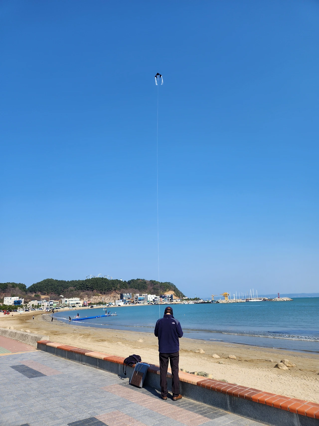 이러지도 저러지도 못한 채 전전긍긍(戰戰兢兢)하고 있을 때, 마침 바닷길을 러닝하고 있던 건장(健壯)한 청년이 우리들 가까이로 성큼성큼 달려오고 있었다. 이 청년이 위에서 내 손을 잡고 양손으로 버텨준다면 발로 옹벽을 더듬어 가며 그럭저럭 내려갈만했다. 자초지종을 설명하고 도움을 청하니, 씩 시크한 웃음을 짓고는 제방 위로 성큼 올라서서 별 주저함도 없이 아래로 훌쩍 뛰어내렸다. 이내 벙거지 모자를 주워 위로 던져주고는 제방턱을 양손으로 턱걸이하듯 버티고, 쑤욱 몸을 끌어올려 가위 치기로 옹벽을 딛더니 손쉽게 제방 위로 올라섰다. 청년의 거침없는 동작을 바라보면서 한편으론 젊음이 부럽기도 했지만 눈앞의 중년여성을 마주하고 서 있는 것이 몹시 창피스러워지는 순간이기도 했다.