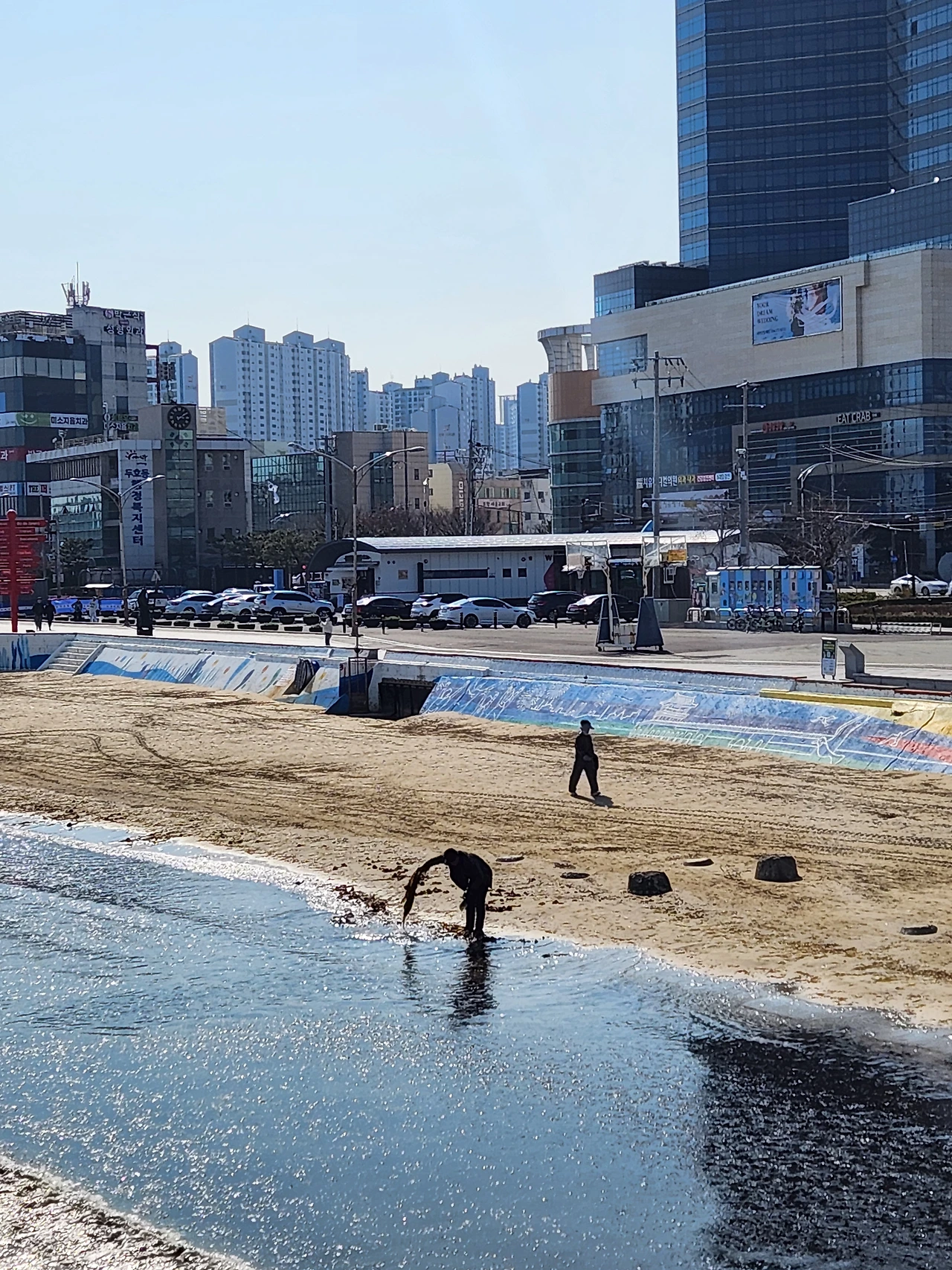 마침, 멀리 바라다본 바다는 옥빛이었다. 아마, 그 아래 바다의 숲도 지금쯤은 한창 푸르를 테지. 그래, 오늘처럼 바다가 푸른 날은 바다향도 어김없이 진하긴 했었어. 몰래 입맛을 다셔가며 발걸음을 재촉하고 있는데, 기다란 나무막대기를 든 중년의 여성이 몇 걸음 앞에서 방파제 아래를 기웃거리고 있었다. 손에 쥔 나무막대기 끝이 쇠스랑처럼 여러 갈래로 도드라져 있는 것을 보니 아마도 데트라포트를 넘어 방파제까지 떼밀려온 미역 줄기를 주으려는 심산(心算)일 것 같았다. 그런데, 도로 위에서 데트라포트 아래의 물가까지 나무막대기 길이만으로는 도무지 미칠 것 같아 보이진 않았다. 가까이 다가가서 보니 과연, 그녀가 방파제 아래에서 건져 올린 것은 미역이 아니라 다름 아닌 베이지색 스웨터였다.
