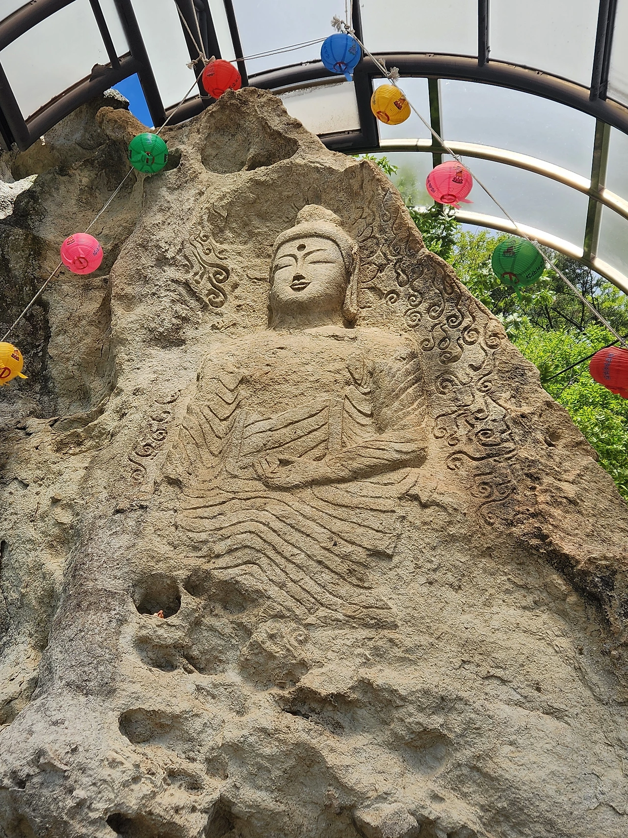 보물 제581호인 마애여래좌상이 주불(主佛)로 문무대왕의 수중릉을 바라보는 방향으로 조성되어 있으며, 이를 중심으로 관음굴과 지장굴, 칠성단, 산신당 등 여러 굴법당과 함께 남근바위와 여궁 등 민간 무속신앙의 흔적까지 엿볼 수 있어 우리나라 석굴사찰의 전형을 보여주고 있다. 좁다란 암도(岩道)를 오르락내리락하며 듣는 사찰의 유래에 귀가 솔깃하면서도, 간간이 불어오는 청량(淸凉)한 바람과 앞이 탁 트인 산세의 아름다움에 잠시동안 말문이 막힐 지경이었다. 그쯤 해서, 한 마디씩 추임새를 넣던 곽 총장의 말이 귀에 쏙 걸려들었다.