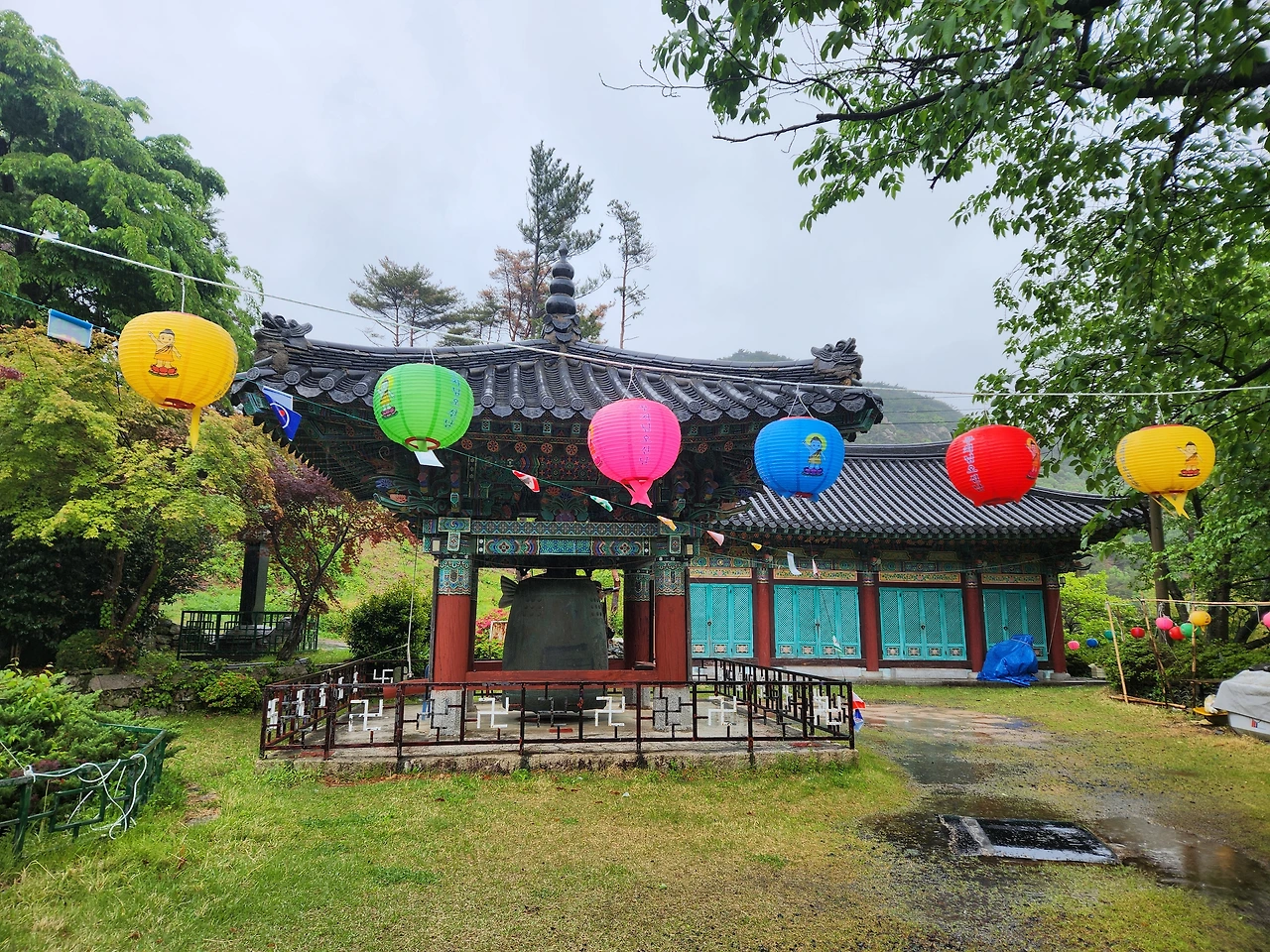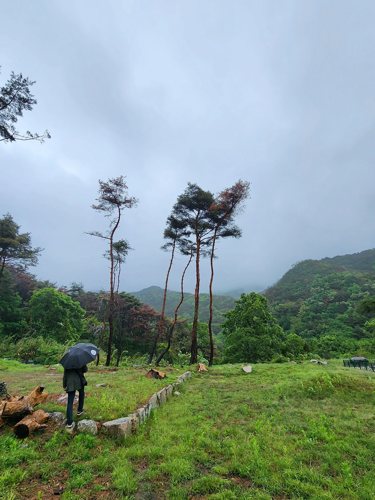 빗를 맞으며 원원사를 돌아보고 있는 이 실장