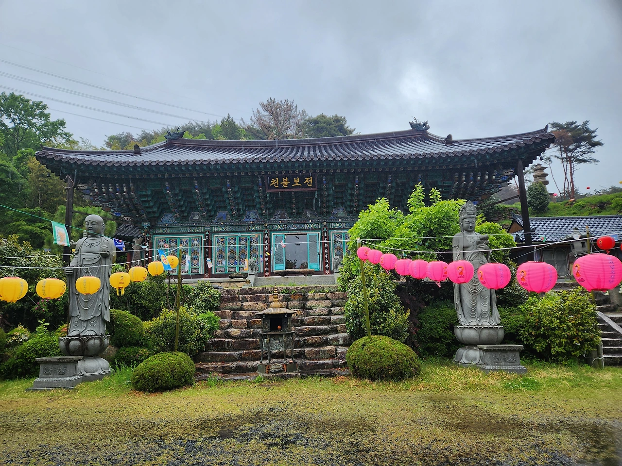 원원사는 천왕문은 따로 없지만, 비바람이 심하게 몰아치는 궂은 날씨에도 불구하고, 석조 사천왕이 산사의 입구를 든든히 지키고 있었다. 밀교 계통의 대한불교진각종에서 설립한 심인고등학교를 모교로 두고 있어서인지, 신라의 승려 명랑(明朗)이 전했다고 알려진 밀교의식 '문두루비법(文豆婁秘法)'이 처음 들어본 말임에도 그리 낯설지만 않은 것이 되려 신기했다.