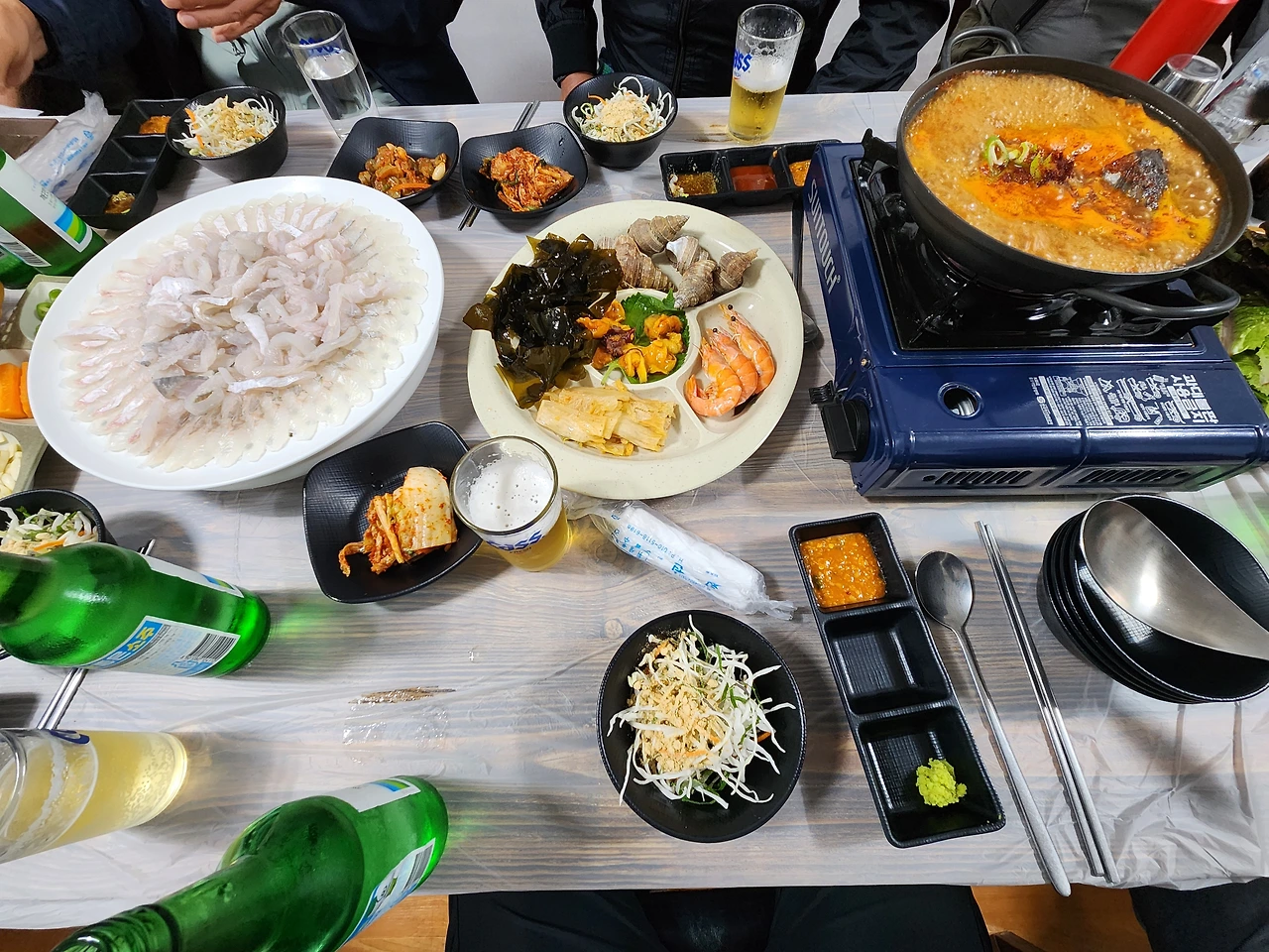 친구들과의 저녁 만찬에 먹은 회 /읍천리 일출