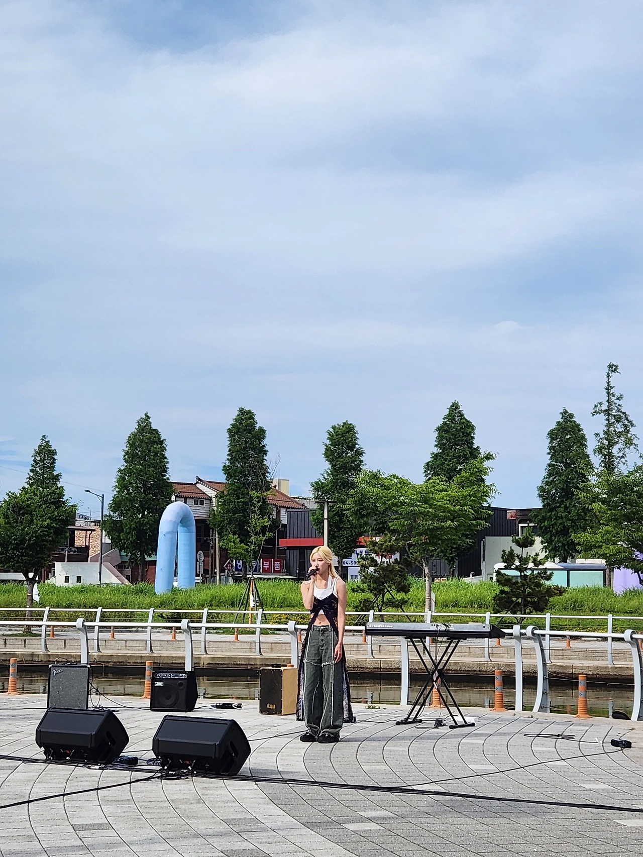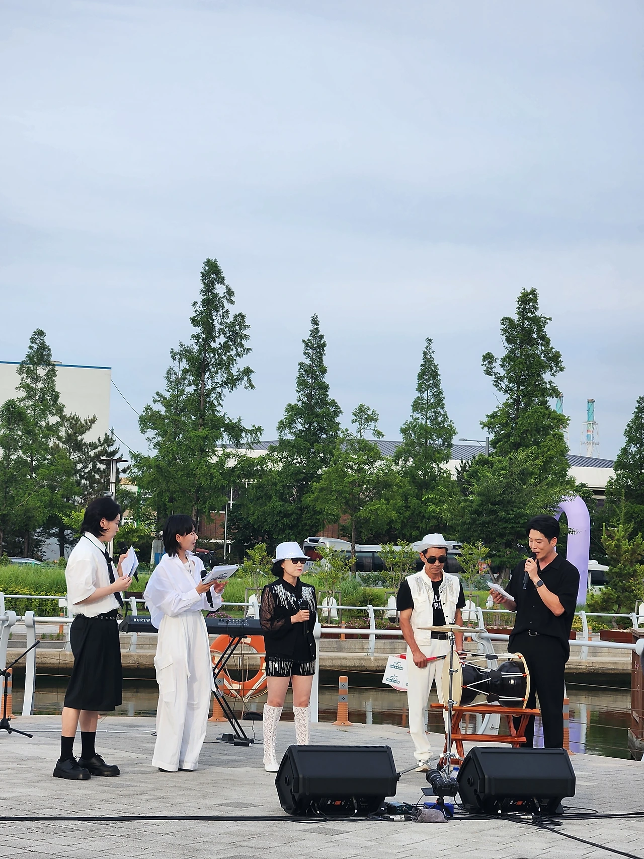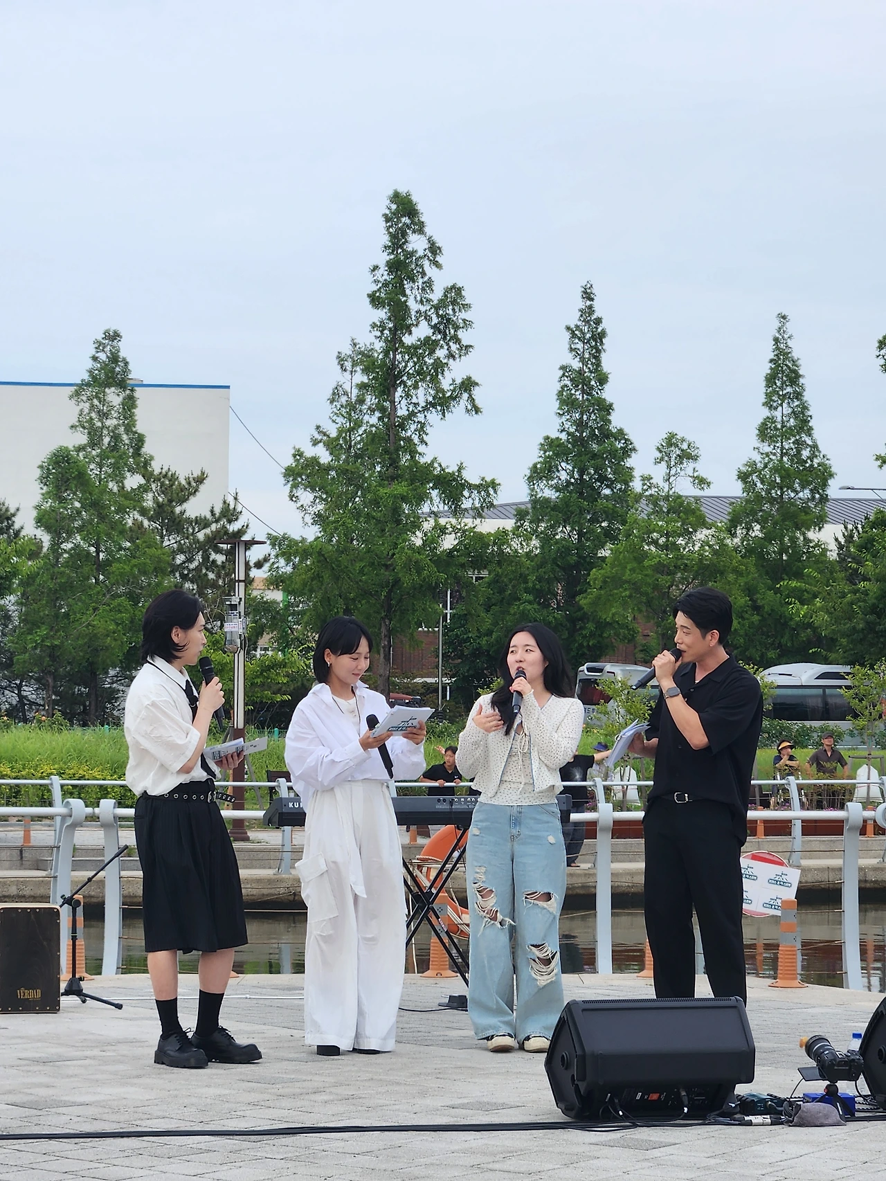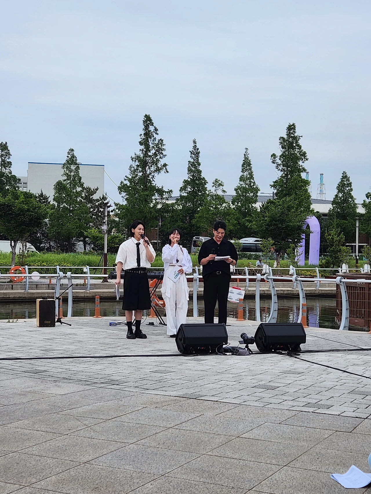 처음에는 멀찍이 서있거나 그늘진 의자에 앉아 데면데면하던 사람들이 본 경연이 시작되자 공연하는 무대의 코앞 자리까지 슬금슬금 몰려들었다. 뙤약볕을 마다하고 미리 자리를 잡은 덕에 내가 앉아 있던 자리는 직관 1열의 명당(明堂) 자리가 되었다. 지역의 한동대 학생이 자작곡 한 노래를 기타 연주를 곁들여 멋지게 노래한 것을 필두(筆頭)로, 목포 새댁과 코딩 전공 대학생, 50대의 중년 여성, 뮤지컬 배우인 루이스 최, 시온이란 활동명을 가진 싱어 송 라이터, 다음 주 데뷔가 예정되어 있다는 아이돌 그룹 위시의 보컬리스트에 이르기까지 참가자의 면모가 각양각색이면서도 가창력이 모두 쟁쟁했다.