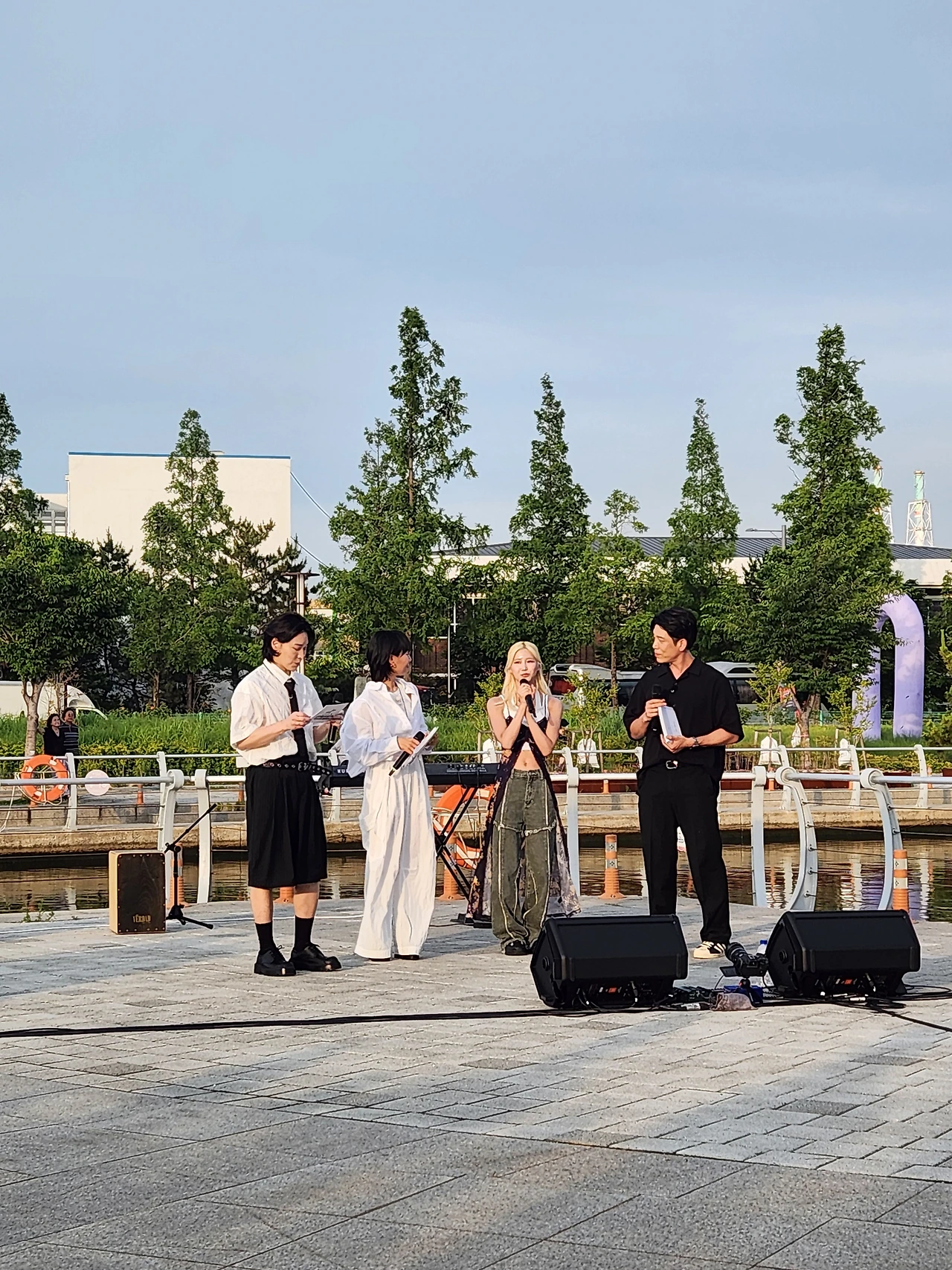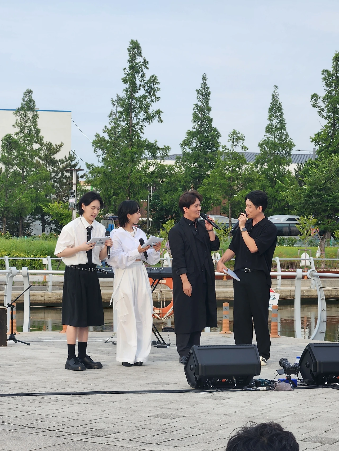 노래가 끝난 뒤, 주변 정리를 위해 행사 담당자가 마이크를 잡고 오늘의 공연에 대해 잠시 안내를 했다. KBS N이 8월 중 방영을 목표로 기획한 버스킹 오디션 프로그램 '보이스 온 더 스트릿(Voice On The Street)'의 첫출발을 불빛축제의 본행사에 앞선 부대행사의 일환으로 기획되었지만, 행사 자체가 취소됨으로 해서 관중 동원에 어려움이 있음을 토로(吐露)하면서 산책 중인 시민들이 적극 공연에 참여해 줄 것을 읍소(泣訴)했다. 마침 리허설이 끝나서, 막 도착한 사회자들이 진행 요원들 몇 발짝 뒤에 서 있었는데 분장(扮裝)을 하긴 했어도 하나같이 무척 낯익은 사람들이었다. 찬찬히 뜯어보니 2AM의 이창민과 최근 트롯가수로 변신한 슈퍼주니어의 성민, SBS 예능 '골 때리는 그녀들'에 선수로 출연 중인 가수 김보경이 바로 그들이었다.