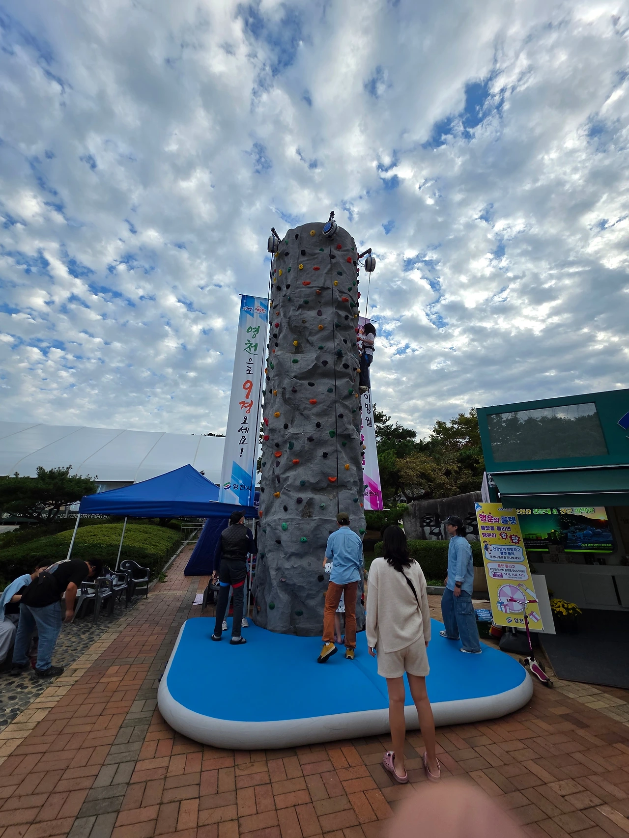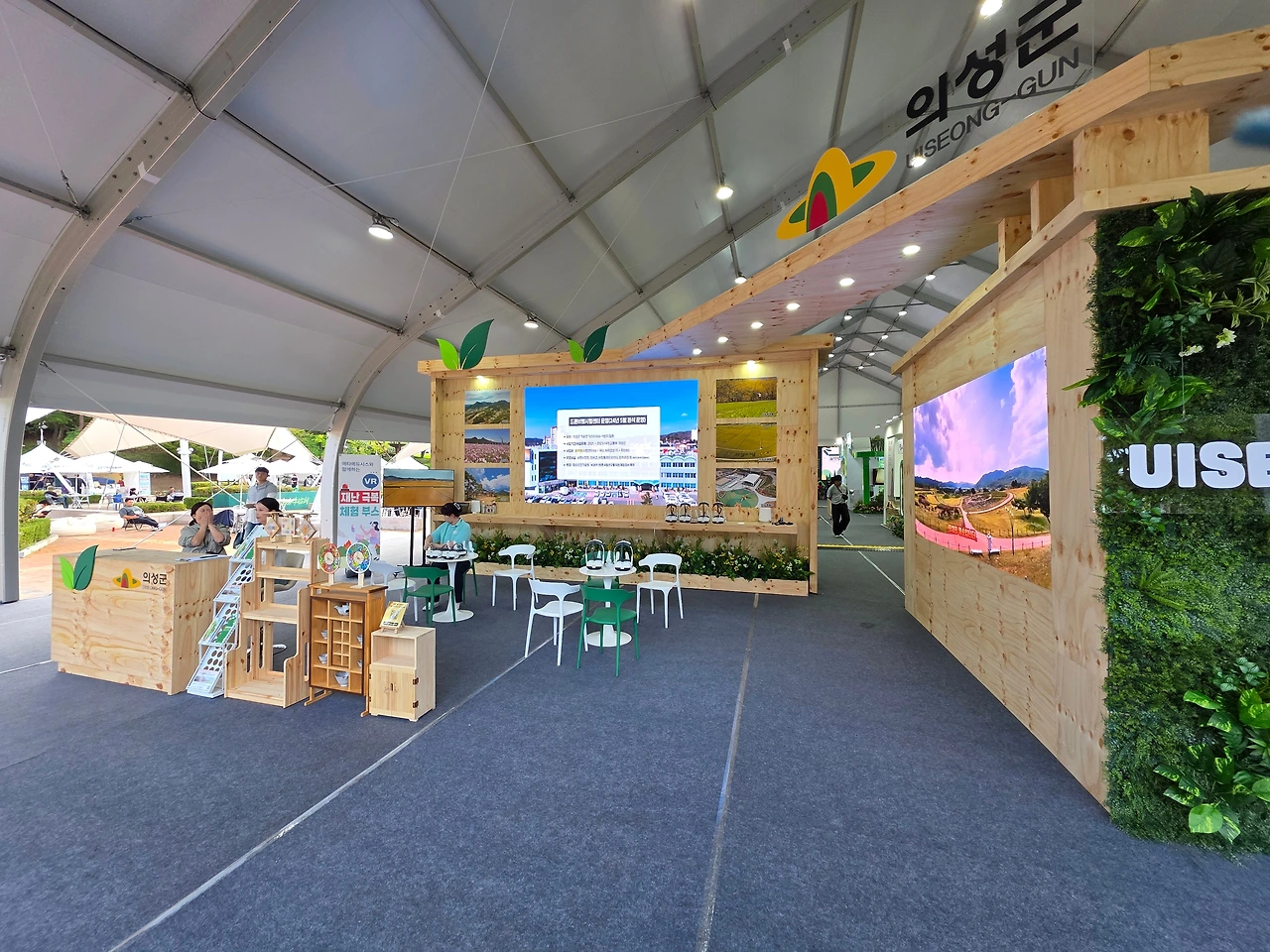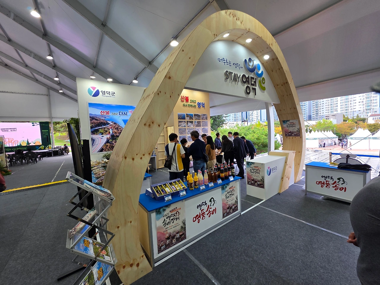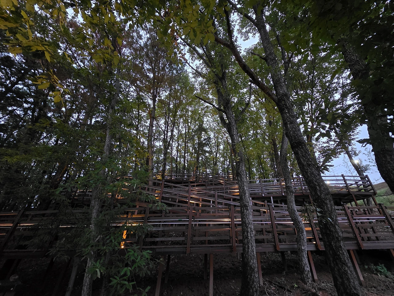 14층 우리 집에서 아래로 내려다 보이는 환호공원 중앙광장 한복판에, 막사처럼 보이는 커다란 무대가 설치되기 시작한 것은 거의 한 달 전쯤부터였다. 처음에는, 아파트 뒤편에 새로 조성되고 있는 환호근린공원의 축하공연장일 것으로 짐작했다. 하지만, 저 지난주 환호근린공원과 환호공원을 이어주는 인도교를 건너 중앙광장을 오랜만에 질러가게 되었다. 광장 근처의 가로등 거치대에는 '2025 경상북도 산림박람회'의 개최를 알리는 배너가 맞바람을 맞아 거칠게 나부끼고 있었다. 세세히 들여다볼 수는 없었지만, 대형 막사 안은 여러 개의 지역별 홍보부스로 구획되어 각 지역을 대표하는 특산물과 홍보자료로 채워지고 있는 중이었다. 아울러, 대형 막사의 둘레를 따라 일렬로 포진(布陣)한 여러 대의 컨테이너 부스와 행사천막도 저마다 안과 속을 다양한 내용물로 속속들이 채우며 손님 맞을 준비에 여념이 없었다.