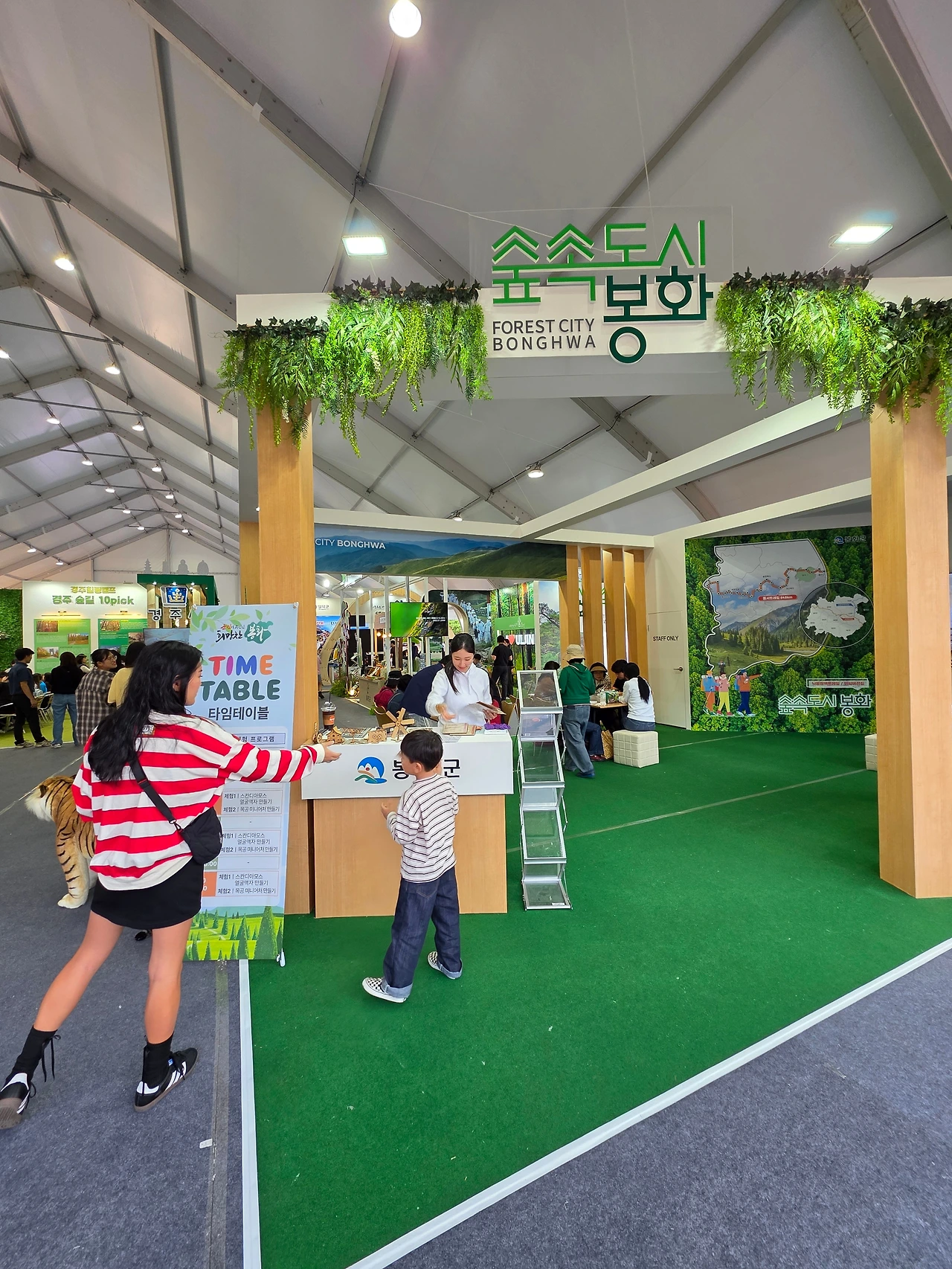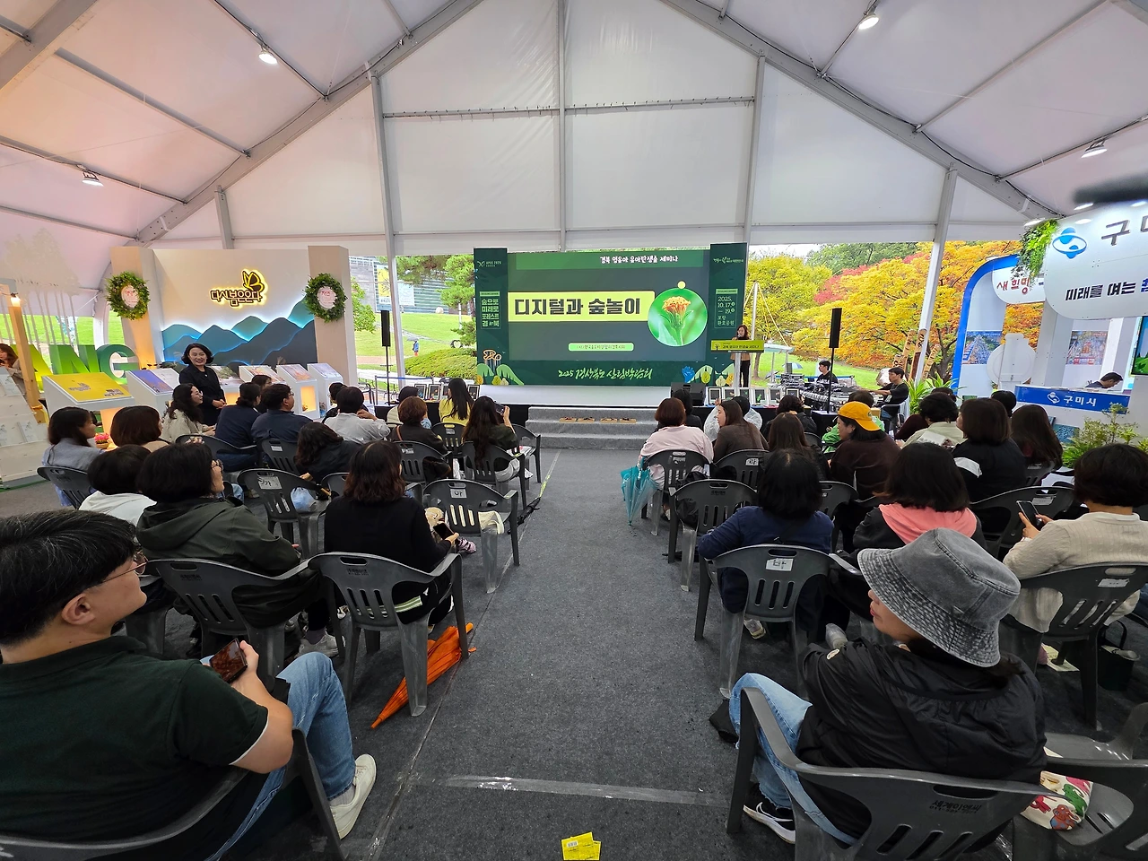 일주일도 채 남지 않은 시월 말인데도 계절은 여전히 해맑은 가을하늘을 선보일 기색조차 없다. 이번 산림박람회는 환호공원 일원에다 숲놀이터를 조성하고 숲 해설 시연(試演)과 교육, 숲사랑 올림피아드를 비롯하여 숲과 관련된 다양한 활동을 함께 했다. 산림과 관련된 여러 유관기관들과 지역대학들이 홍보관을 만들고 산림기업들까지 각자 독립된 부스를 마련해서 다양한 제품전시와 홍보활동에 열성적이었다. 다양한 먹거리의 푸드트럭이 구석구석 자리를 메웠고, 행사장의 흥을 돋우는 버스킹도 상설무대의 한쪽에서 함께 계속되었다. 다만, 아쉬운 점이 하나 있다면 3일 내내 궂은 날씨로 인해 원만한 행사가 진행되지 못한 안타까움이었다.