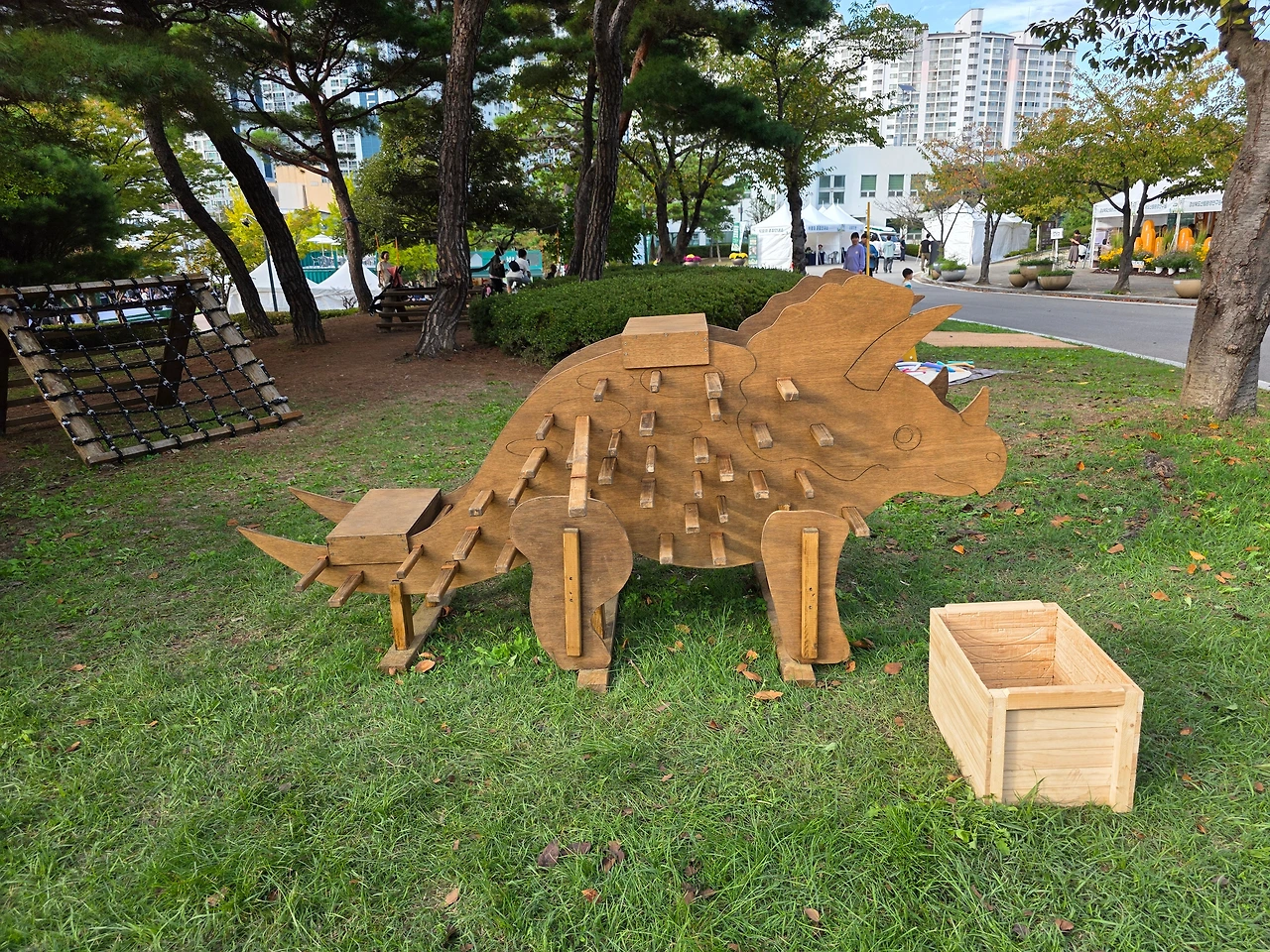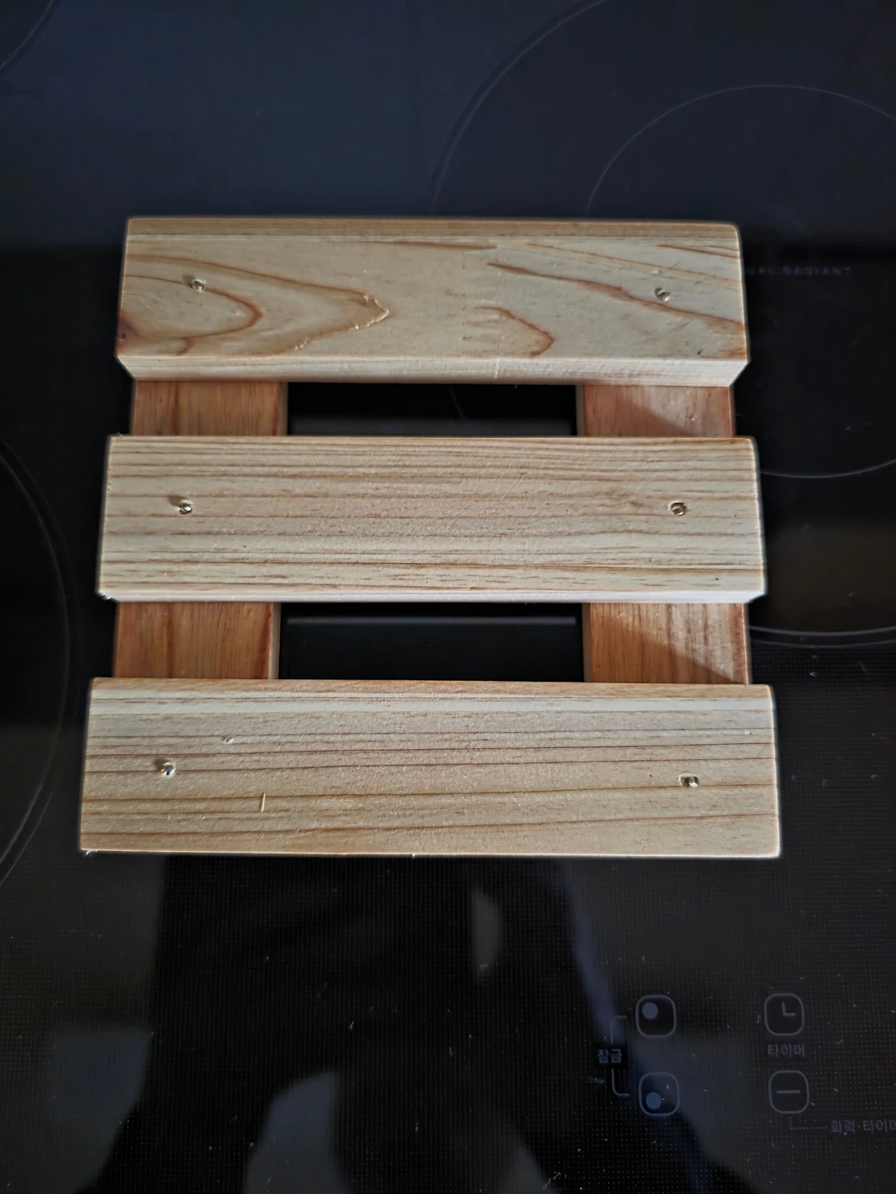 우려했던 것과는 달리, 행사 첫날 오전은 잔뜩 흐리기만 했다. 아직은 홍보가 덜된 탓인지 부스를 찾아오는 사람이 그리 많지는 않았다. 10시가 되기 전이어서인지는 몰라도 체험활동을 막 시작한 부스조차도 찾는 사람이 드물었다. 우선은, 사전 정보도 없이 무턱대고 찾아온 사람들 잘못이 컸다. 가장 먼저 시작한 의성군 부스의 화재 진압 VR부터 체험하고 나서, 바로 이웃한 경주시 부스에 들렸더니 목공체험이 막 시작되고 있었다. 부스 앞을 주삣거리고 있으니, 친절하게도 부스 지킴이가 부스 안쪽 테이블로 자리를 안내해 준다. 쉽게 조립할 수 있도록 미리 목재를 잘 재단해 두어서, 홈을 파둔 자리에다 못질을 하고 난 후 순서에 따라 사포로 마름질을 한 다음, 유약(釉藥)을 골고루 발라 목재의 면면에 광택을 내는 것을 마지막으로 냄비받침대의 모든 작업이 끝이 났다.