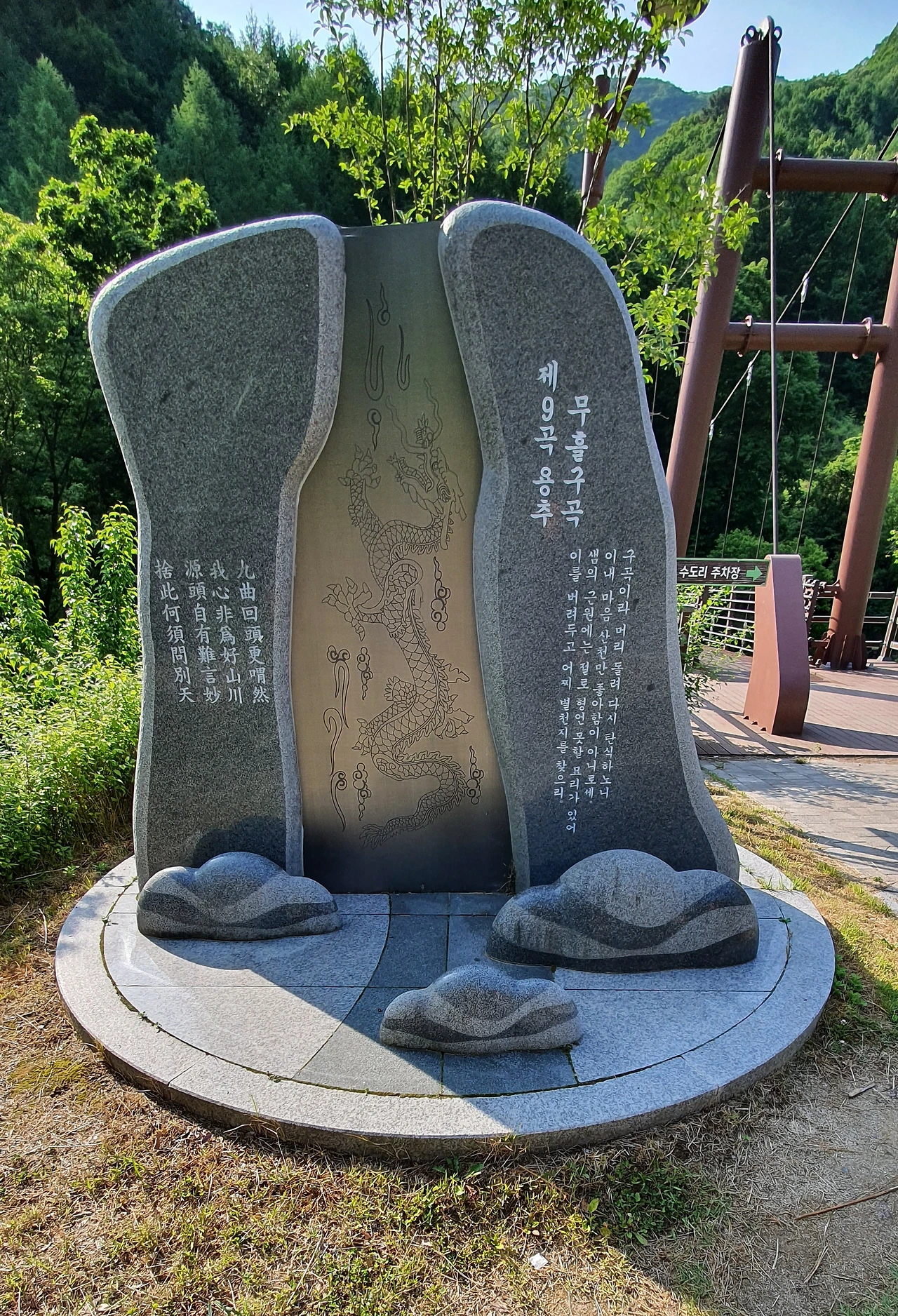 이른 아침의 바깥공기는 청량하기 그지없었다. 식사 전에 숙소 바로 아래에 있는 용추 폭포를 다녀오기로 했다. 출렁다리를 건너 '인현왕후 길'이라 이름 붙은 오솔길을 따라 걷는데 계곡을 따라 흘러내리는 물소리가 한층 더 요란해졌다. 샛길로 나 있는 데크를 따라 잠시 아래로 내려가니 바로 눈앞으로 용추 폭포가 그 모습을 드러냈다. 가뭄이 길어지고 있음에도 폭포의 수량(水量)이 여전해 보였는데, 상류 계곡의 산이 높고 깊어 굽이진 곳의 소(沼)마다 넉넉하게 물을 머금고 있기 때문일 것이다.