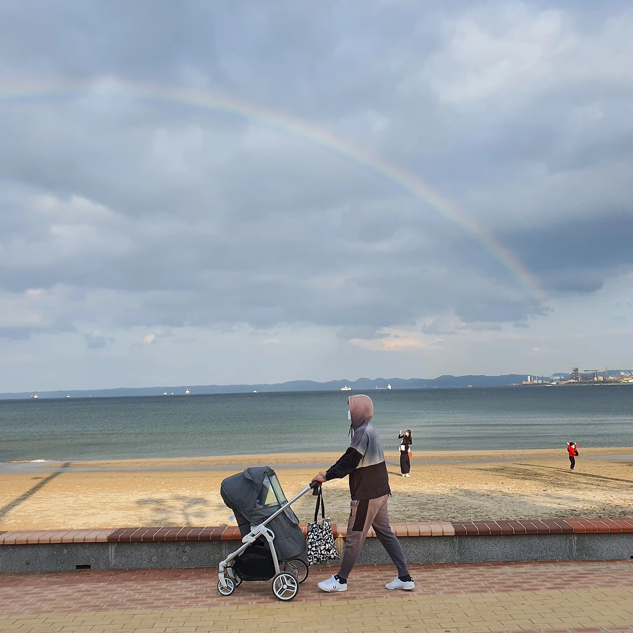 어느 한순간, 돌돌돌 도로 위로바퀴 구르는 소리가 들려 뒤돌아보니, 유모차를 끌고 있는 젊은 새댁이 어느새 뒤를 따르고 있고, 유모차 그늘막 아래서 나를 빤히 올려다보는 아기와 그만 눈이 마주치고말았다. 웃음 띤 얼굴로 슬쩍 얼러주니 곧장 까르르 해맑은 웃음으로 화답(和答)을 한다. 그런데가만히생각해 보니, 이 시간에 갓난쟁이 아이를 본 것은 바닷길을 다시 산책하기 시작한 후로 거의 처음인 것 같다.