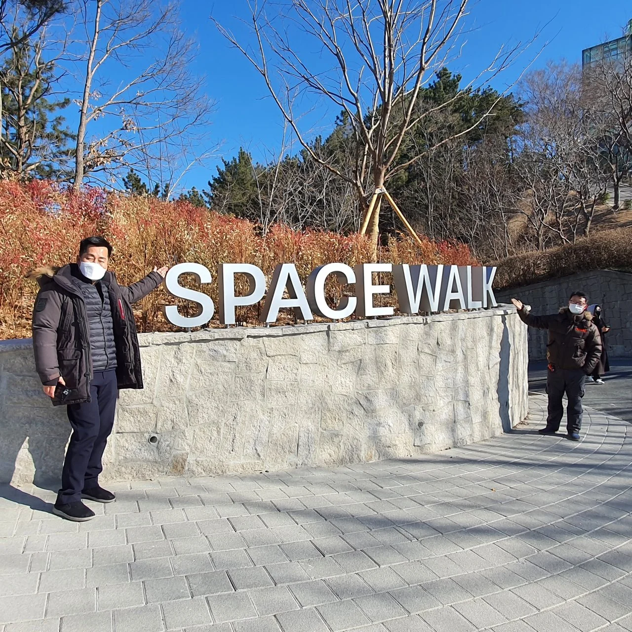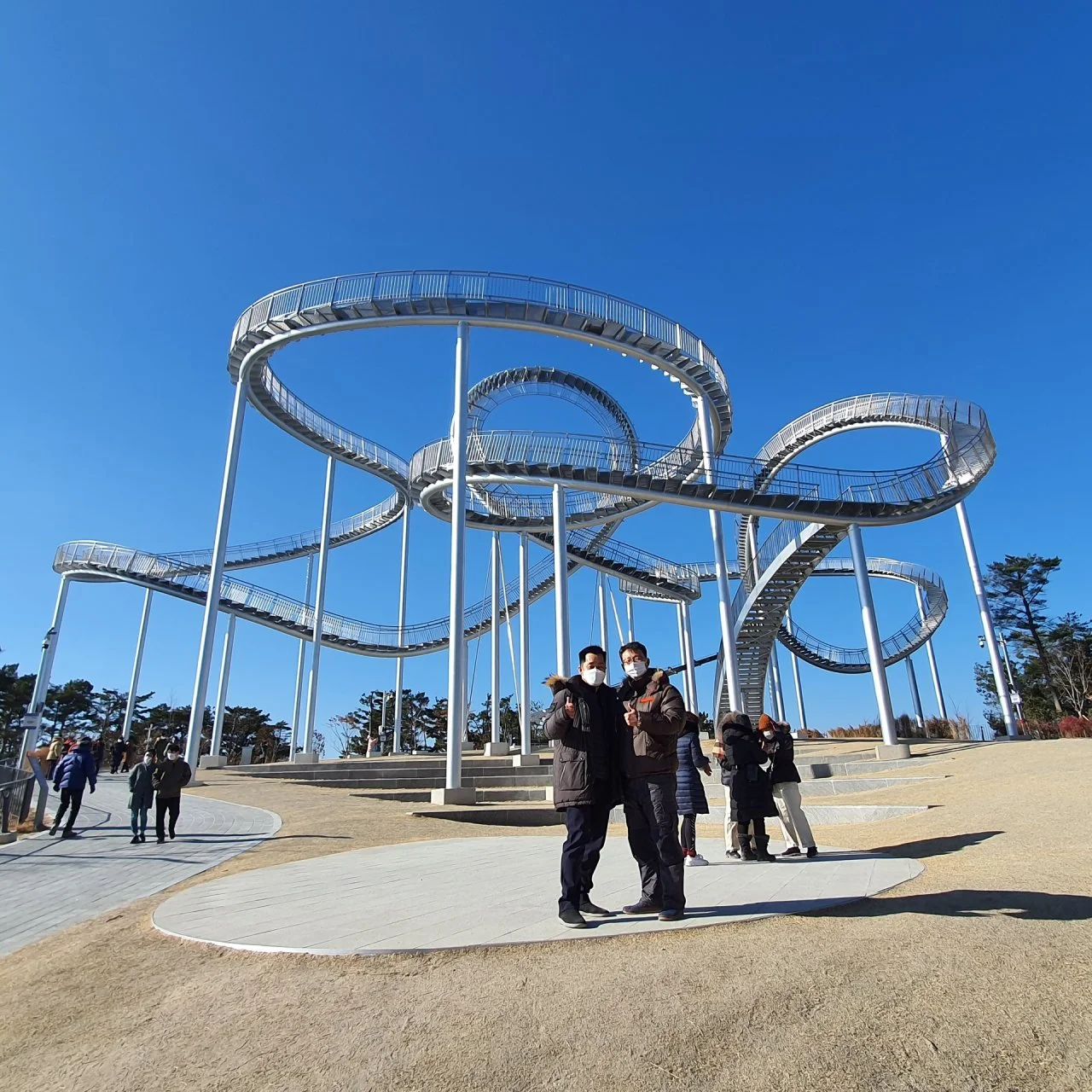 12시, 순찬이와의 점심 약속에 맞춰 죽도시장 안 '엽이네 횟집'에 도착하려면 여전히 시간이 넉넉해서, 환호공원을 잠시 둘러보기로 했습니다. 우선, 요즘 포항의 핫플레이스인 스페이스 워크를 찾았는데, 열 시 개장(開場) 시간에 맞춰 온 사람들이 갑작스러운 강추위에 옷깃을 단단히 여미고 조형물 주변에서 기념사진을 찍느라 여념(餘念)이 없었습니다. 하필이면 때를 맞춰 강풍주의보가 발령(發令)되고,실제로도 바람이 거세서 출입이제한된 터라 사람들이 스페이스 워크에 직접 올라가 보지는 못했습니다. 어쩔 수 없이 뒷날을 기약(期約)하며 환호공원 둘레길을 둘러보는 것으로 아쉬움을 대신할 수밖에 없었습니다.