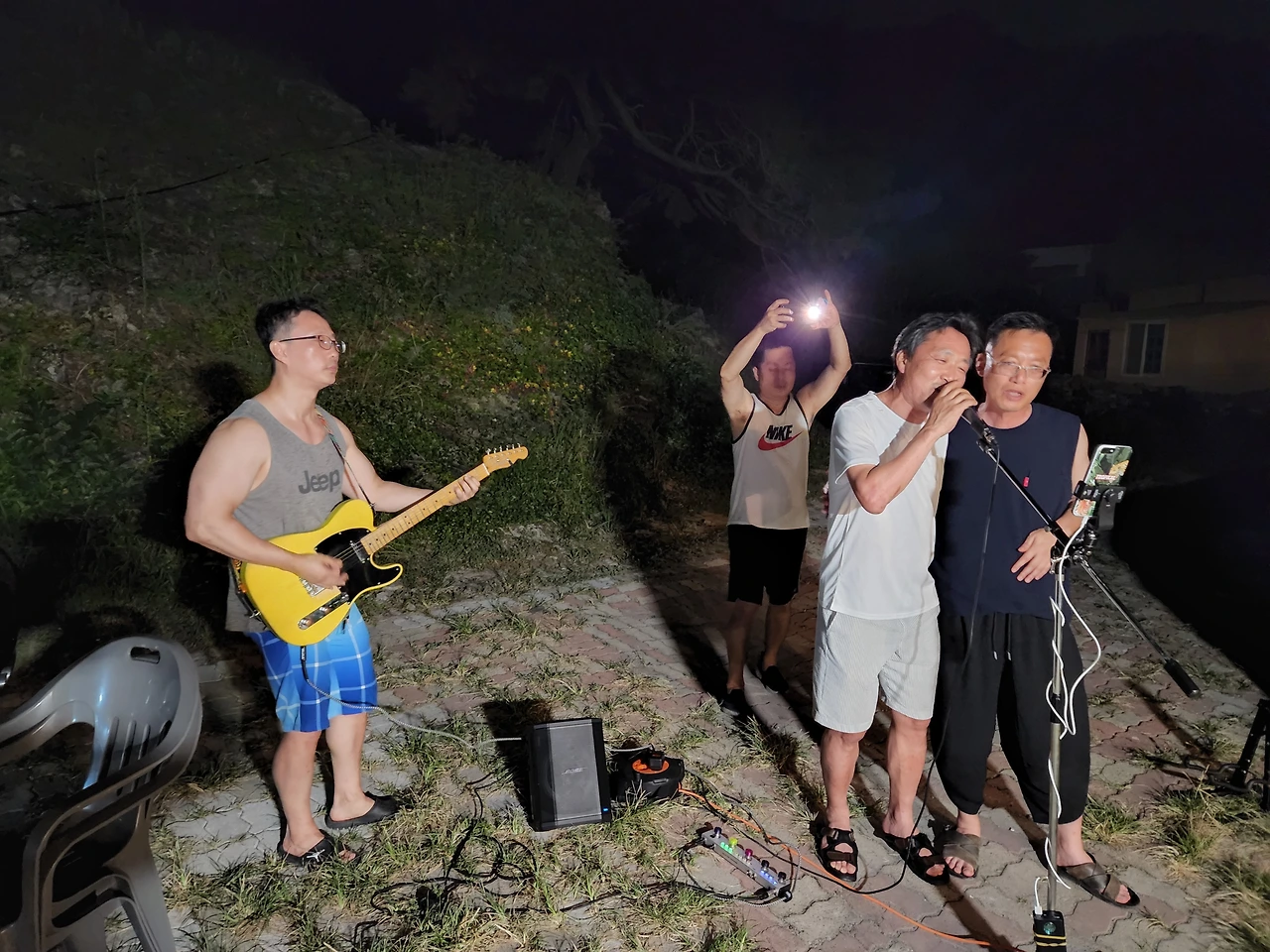 기억 속, 학창 시절의 이런저런 이야기를 돌아가며 하다 보니 어느새 날은 어두워지고 먼바다부터 까맣게 어둠 속에서 지워지고 있었다. 멀리 포스코와 포항 시가지의 불빛이 가물거리고 있는데, 마치 파도 소리의 리듬에 휩쓸리며 춤을 추고 있는 듯했다. 날이 더운 데다 취기가 올라와서인지 온 몸이 땀투성이가 되었고, 누가 먼저랄 것 없이 웃통을 벗었다. 마당 안 간이 무대에서는, 교사 밴드의 기타리스트이기도 한 병준이가 Eric Clapton의 'Wonderful Tonight'을 연주하며 잔잔하게 노래를 하는데, 아닌 말로 정말 원더풀 한 우리들 만의 밤이 무르익어 가고 있었다.