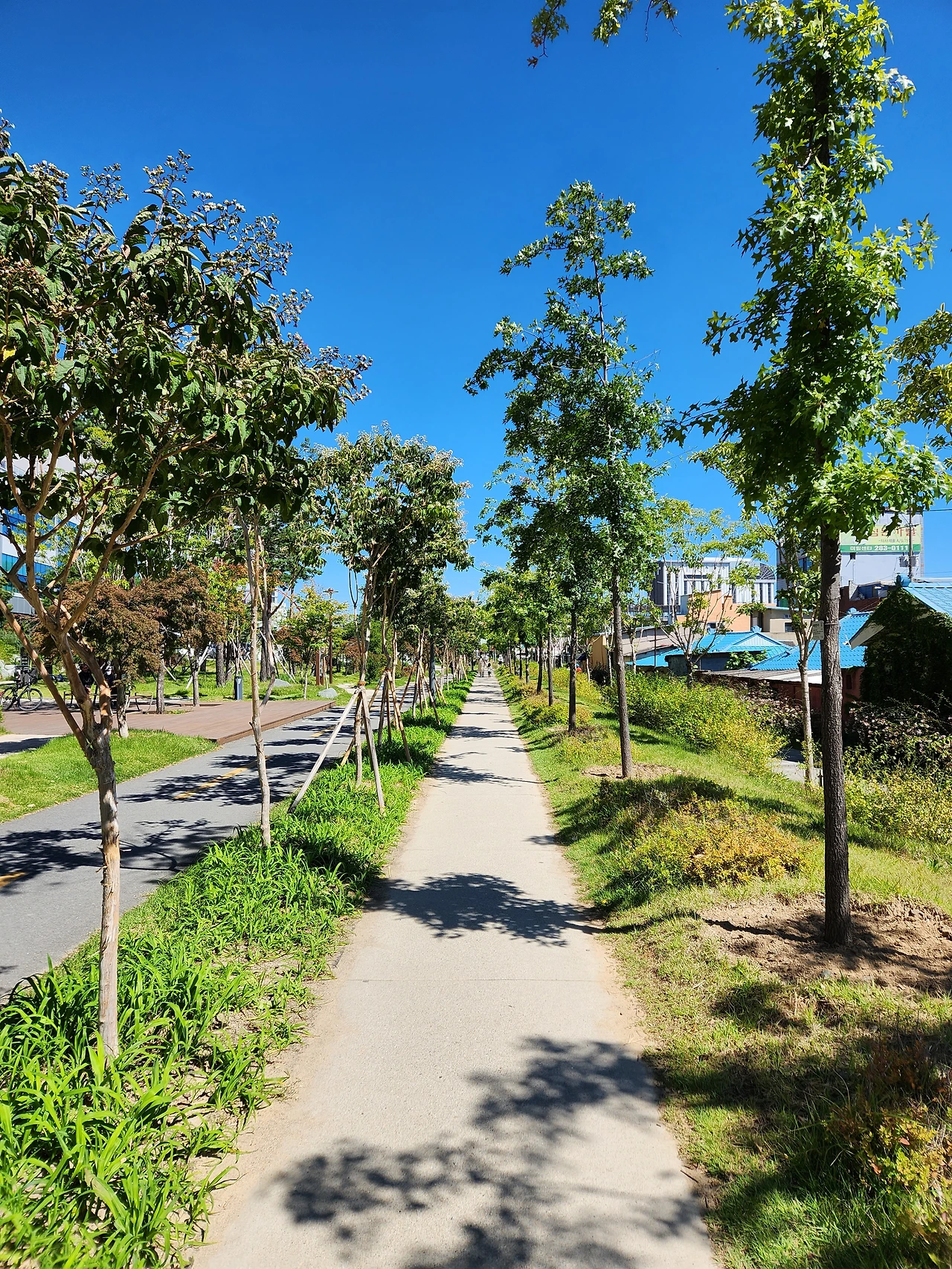 생각해 보니, 작년 봄에 철길숲을 다녀온 후로 편도나 구간의 사잇길을 걸은 적은 있어도 온전히 시작부터 걸어서 반환점을 되돌아오기는 지난해 이 글을 쓴 후로 처음이다. 그리고, 계절은 봄에서 한 해를 걸러 가을로 접어든 지금에야 이 길을 다시 걸으니, 주위를 오가는 사람들의 옷차림이나 조경(造景)으로 심어놓은 초목(草木)에 이르기까지 물색이 완연히 다르다.