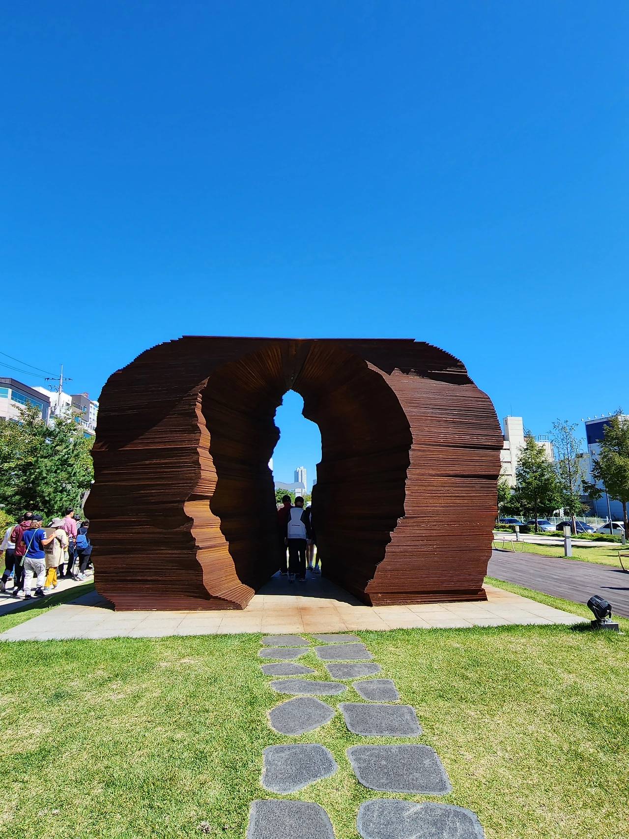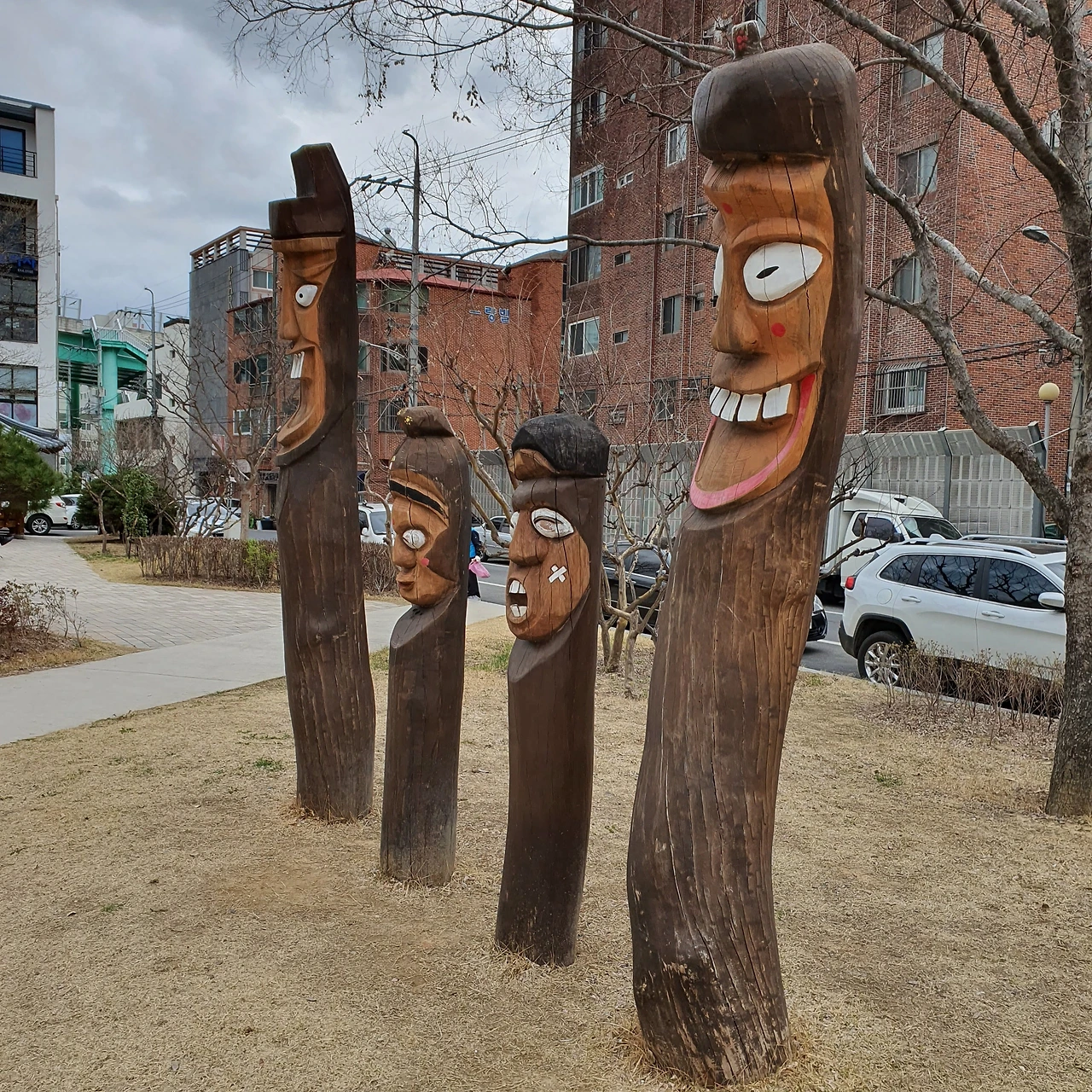 잠시 시간을 두고 작품들을 하나하나 감상하며 걷는데, 새로이 조성된 주위 경관(景觀)과는 상당히 이질적(異質的)인 것들이 눈에 띄었다. 목각(木刻)으로 된 장승들 옆에 길게 늘어서 있는, 과거 이 지역을 다스렸던 고을 현감(縣監)과 관찰사(觀察使)들의 청덕선정비(淸德善政碑)와 영세불망비(永世不忘碑)가 바로 그것이다. 신고(辛苦)한 세월의 풍상(風霜)을 겪은 듯, 비문(碑文)에는 켜켜이 이끼가 끼어 있고 비석(碑石) 모서리 곳곳엔 험하게 패인 흔적들도 남아 있는데, 공덕비를 통해 이들이 몸소 보여준 청렴(淸廉)과 선정(善政)이야말로 현세(現世)의 우리들이 절실히필요로 하는 것이라생각하니 절로 고개가 숙여졌다.