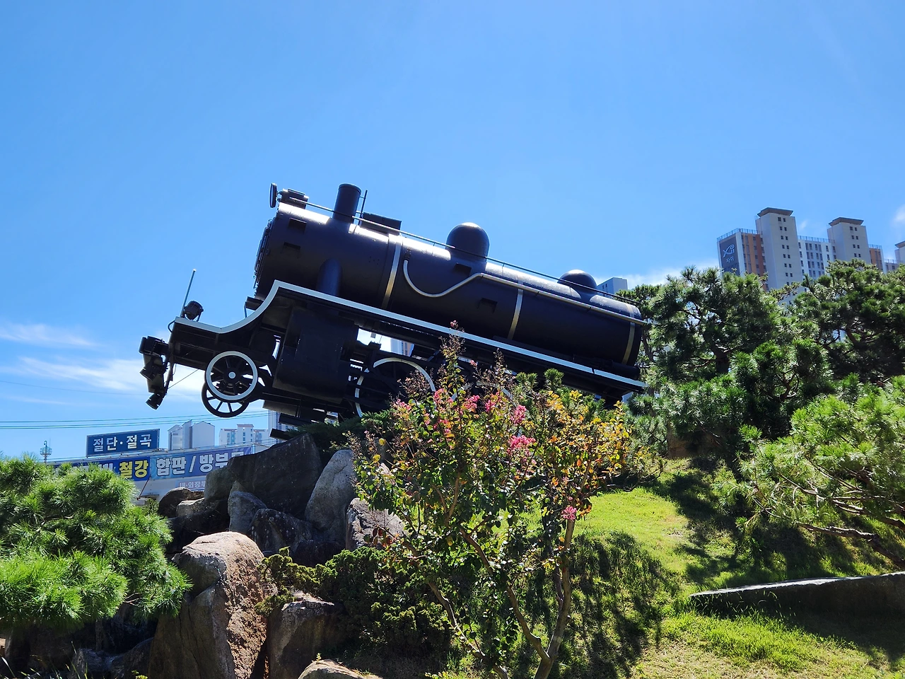 되돌아갈 때는, 오던 길에 미리 눈 여겨 두었던 인상적인 장소와 조형물들을 여유 있게 하나씩 사진에 담았다. 먼저 택한 것이 선로(線路) 주변의 가로수와 언덕 위의 예쁜 집들, 여전한 역동성(力動性)을 내뿜으며 언덕 위에 당당히 버티고 선 기관차(機關車)가 바로 그것이다. 하지만 여러 다양한 풍경들 속에서도 가장 깊은 울림으로 마음속에 자리 잡은 곳은 하숙집과 그 주변 골목길, 그리고 포항역을 감싸고 있는 미로같이 얽힌 샛길과 철길숲 옆으로나지막이 담장을 끼고 돌아가는 정겨운 골목길이다. 이는, 오랫동안 몸 부대끼며 살았던 대구 변두리의 우리 집 앞 골목길과 다름이 없는데, 비록, 얼핏 보기에는 누추(陋醜)하고 비루(鄙陋)해 보여도 결코 천박(賤薄)스럽지 않은, 고향 같은 살가움이 여기저기 스며 있는 곳이다.