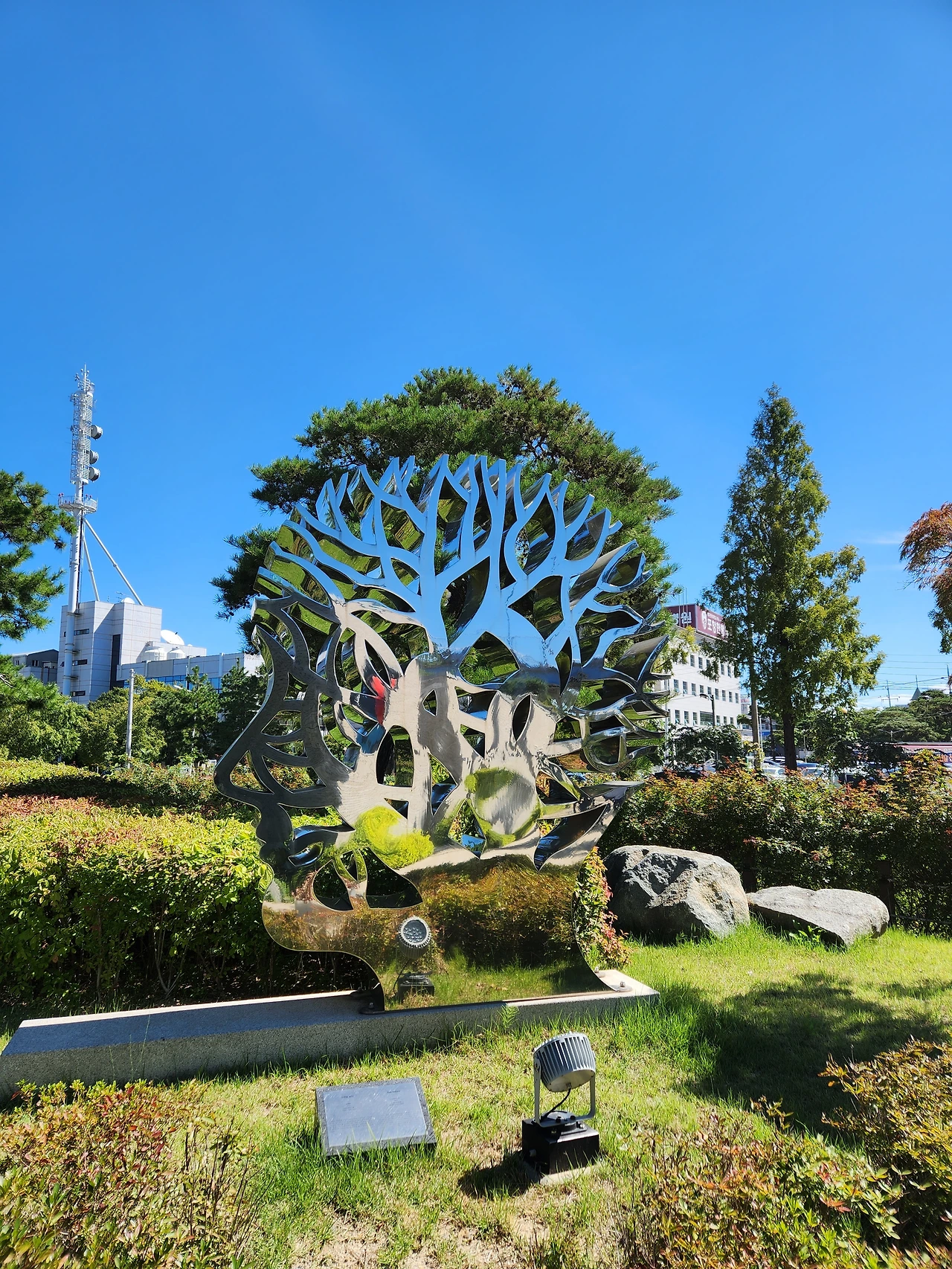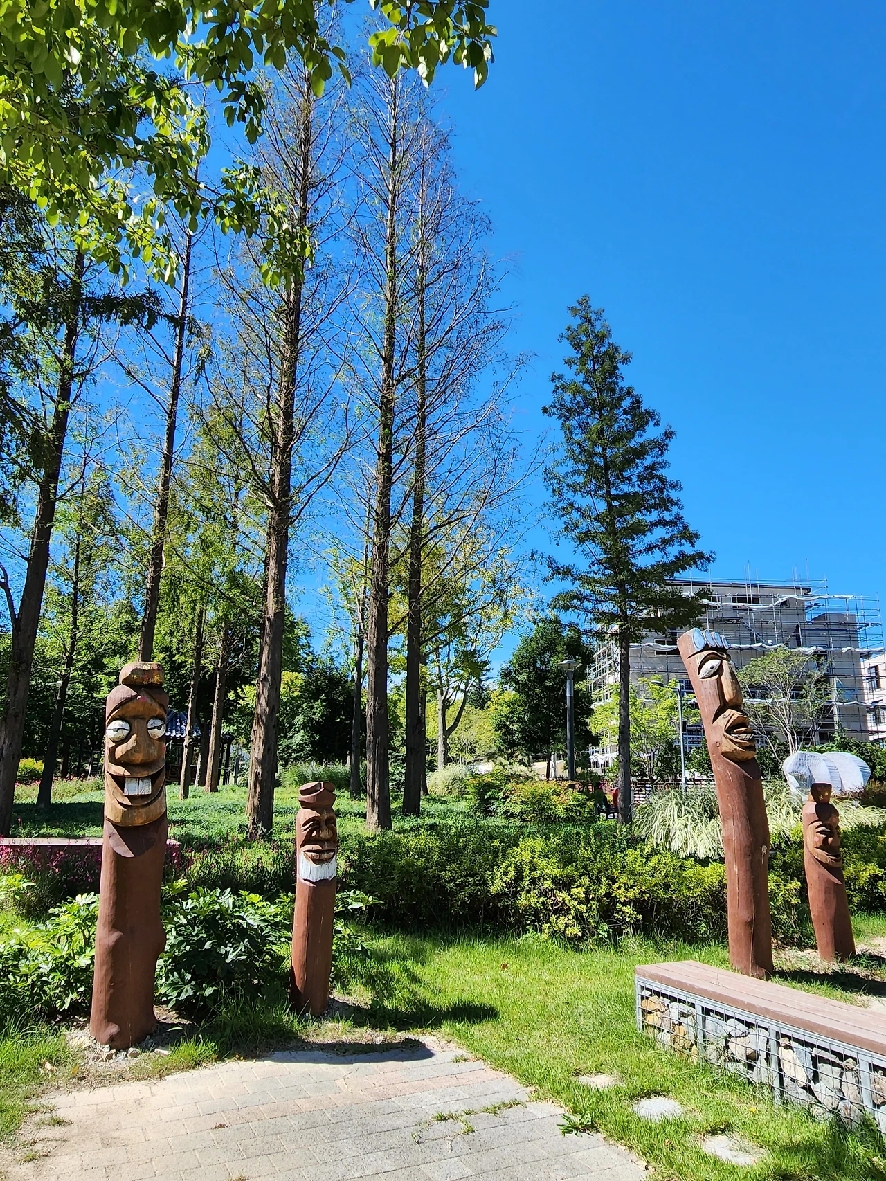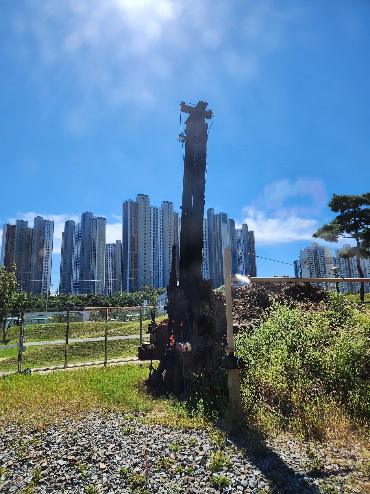 이를 지나쳐 또 한참을 걸으니 '불의 정원(庭園)'이 눈앞으로 보인다. 철길숲을 조성하기 위한 용수(用水)로 활용하고자 관정(管井)을 뚫던 중, 애초 원했던 물이 아니라 암반(巖盤) 지층에 매장된 가스로 인해 생각지도 못했던 불길이 솟구쳐 올랐던 것이다. 당시 이곳을 감리(監理)하던 사람이 바로 내 어릴 적 친구인데, 그는 유능한 조경기술사(造景技術士)로 이 분야에 해박(該博)한 이학박사(理學博士)이기도 했다. 한바탕 소동을 겪은 후 포항시와 협의(協議)를 거쳐 이곳은 '불의 정원'이라 명명(命名)되었고, 이내 철길숲을 대표하는 랜드마크가 되어 포항 시민들로부터 큰 사랑을 받고 있다.
