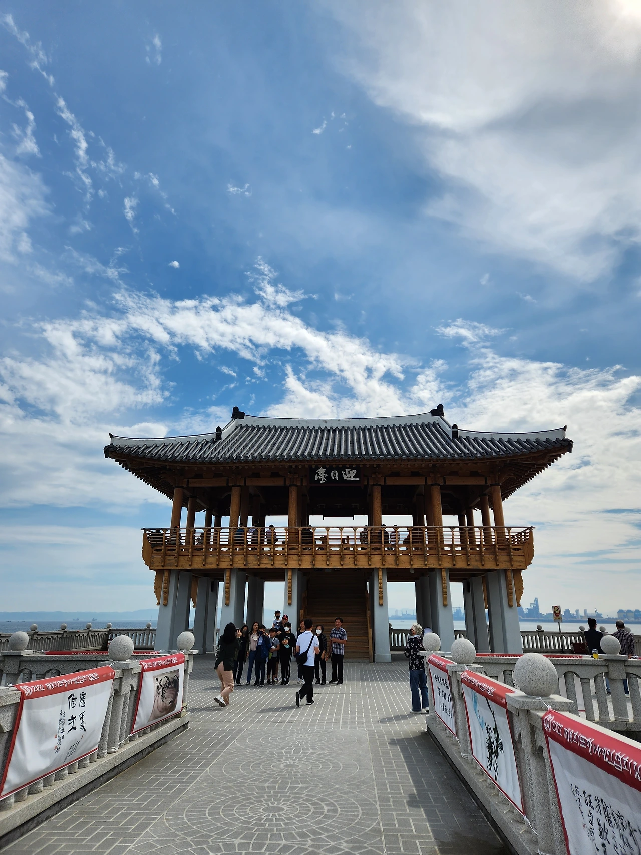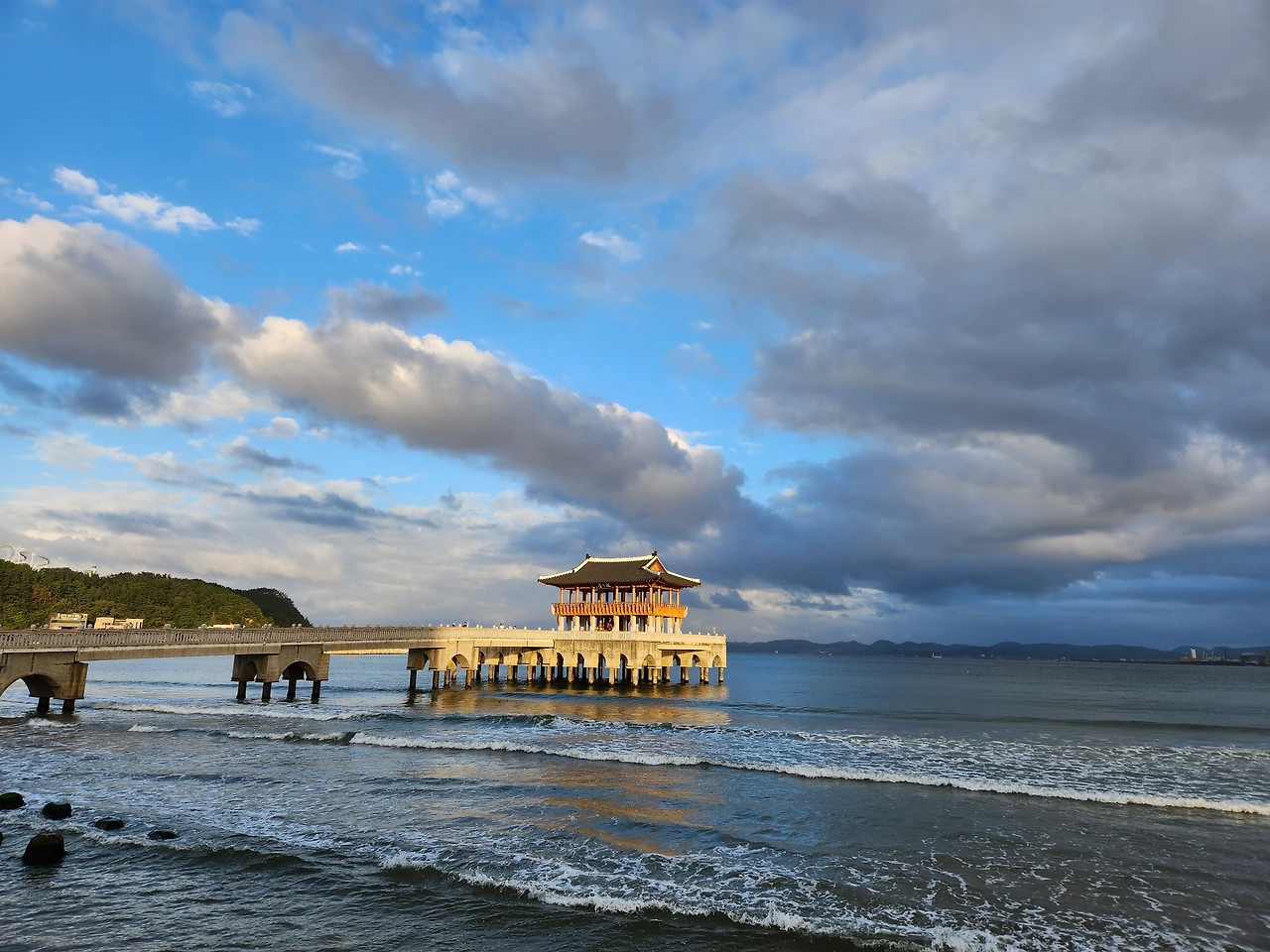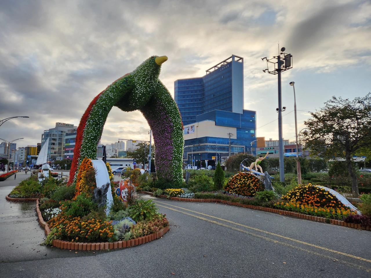 영일대 앞 광장에는, 지난봄 경북도민 체전을 기념해서 세운 조형물(造形物)이 여전히 꽃단장을 한 채 고운 자태(姿態)로 서 있어서 오가는 사람들의 눈길을 끌고 있다. 장미화원(薔薇花園)을 끼고 옆길로 돌아서 영일대 해상 누각에 오르니, 젊은 여자 몇 명이 누각의 모퉁이에 서서 포스코를 배경으로 서로서로 사진을 찍어주며 싱그러운 웃음을 머금고 있다.꽃다발을 한 아름 안고 있는 여자를 중심으로 네댓 명이 머리를 맞대고 셀카를 찍고 있는데, 얼굴 만면에 띤 생기발랄한 표정을 곁에서 지켜보는 것만으로도 금세 마음이 밝아졌다. 꽃 같은 젊음이 한아름의 꽃다발과 함께 저마다 예쁜 꽃으로 피어나고 있는 것이다. 아마도,누군가를 위해 꽃을 샀을 때의 즐거운 마음이이를 지켜보는 사람에게까지도 전해지고, 잠시 우울했던 마음으로부터 나를 벗어나게끔 했다.