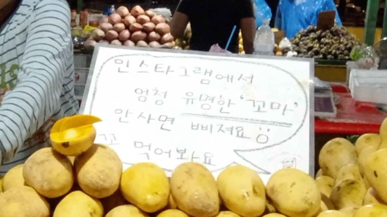 “인스타에서 유명한 꼬마”라는 문구가 있는 과일 코너에 앞에 멈추게 되었다. 멈추자마자 한 꼬마가 하주 나긋한 목소리로 “누나~” 그러면서 호객행위를 하기 시작했다. 그걸로 끝이 아니었다.