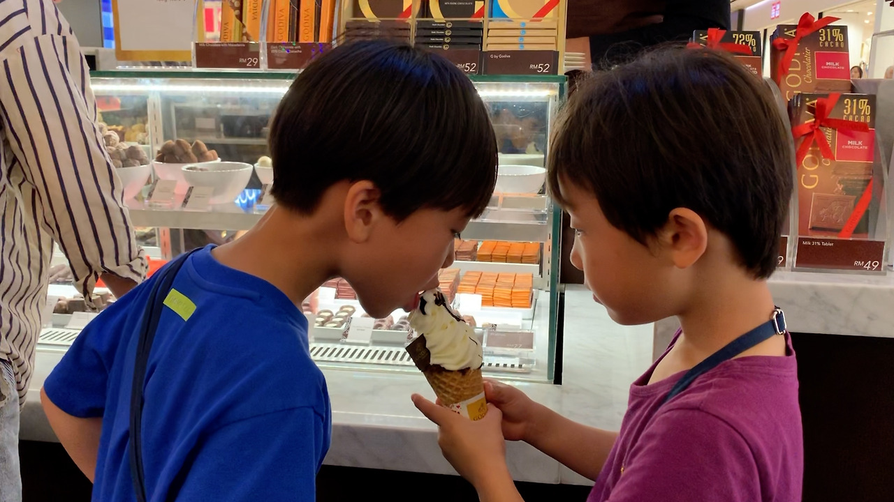 결국 하겸이는 g 으로 판매하는 낱개 초콜릿을 골랐다. 반대로 하민이는 아이스크림을 선택했다. 기왕 초콜릿 매장에 왔으면 초콜릿을 고를 것이지… 아이스크림이라니… 뭐 나중에 말하겠지만 결과적으로 하민이 선택이 자기에게 최고의 선택이었다.