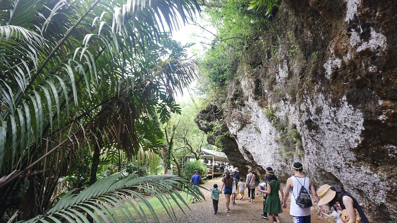 배가 선착장에 도착하나 관광객들이 내리기 시작했다. 선착장에는 차모르 원주민이 전통 복장(펜티만 입음)을 입고 관광객들을 맞이했다. 내린 곳은 차모르 원주민의 생활 모습을 살펴볼 수 있도록 꾸며 놓은 곳인데 우리나라의 민속촌 같은 곳이라 보면 된다. 물론 민속촌 처럼 크지 않다. 집 몇 채가 있는 게 전부이다. 민속촌 같이 다양한 체험이 있고 볼거리가 있을 거라 기대하고 왔다면 실망할 수 있는데, 우리는 철저히 아이들 눈에서 괜찮을 거라 생각했기 때문에 크게 실망하지 않았다.