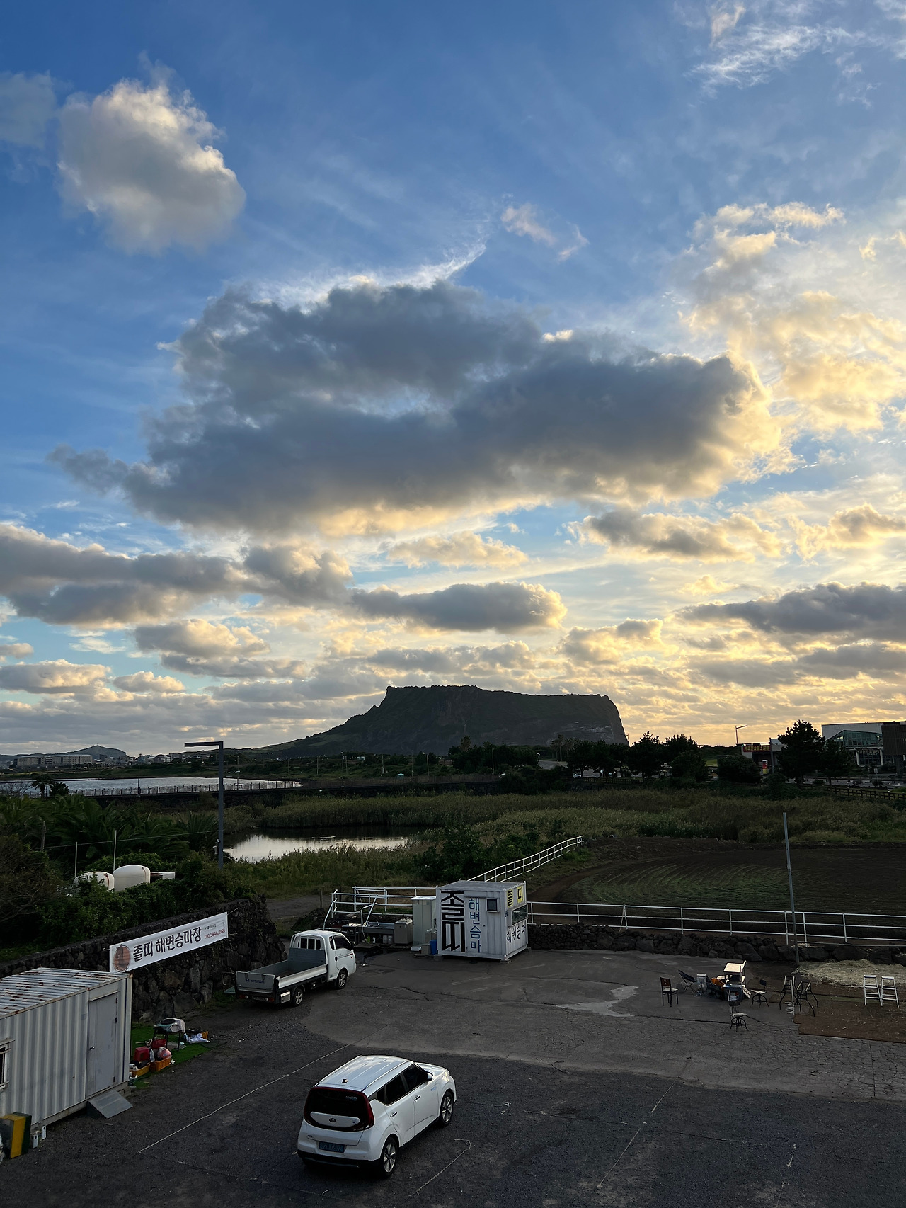 킥보드로 여행하면서 좋은 점 중 하나는 생각지도 못한 곳에서 정말 멋지고 아름다운 풍경을 맘대로 볼 수 있다는 것이다. 살면서 제주를 수십 번 방문했지만, 항상 렌트카를 타고 목적지를 향해 네비를 보고 달려갔던 것 같다. 킥보드를 타다 좋은 풍경이 나오면 달리던 길을 멈추고 가방을 내려놓고 바닥에 철퍼덕 앉아 멍하니 바라보기 일쑤였다. 혼잣말로 '이게 낭만이지' 라며 말이다. 아쉬웠던 건 이 좋은 풍경, 좋은 순간을 누구와 공유하지 못한다는 것이었다. 그러면 결국엔 '꼭 다음엔 아내와 함께 와야지' 하며 엉덩이를 털며 일어났다.
