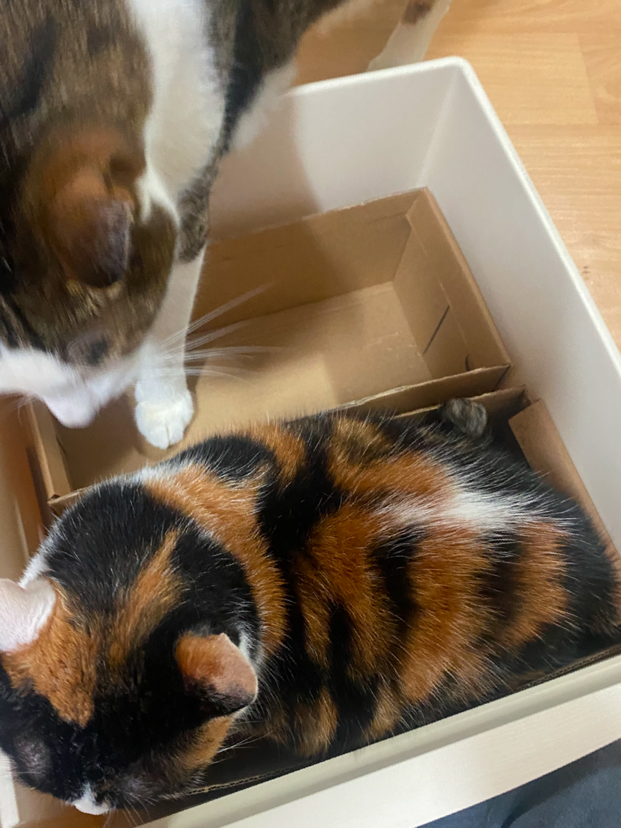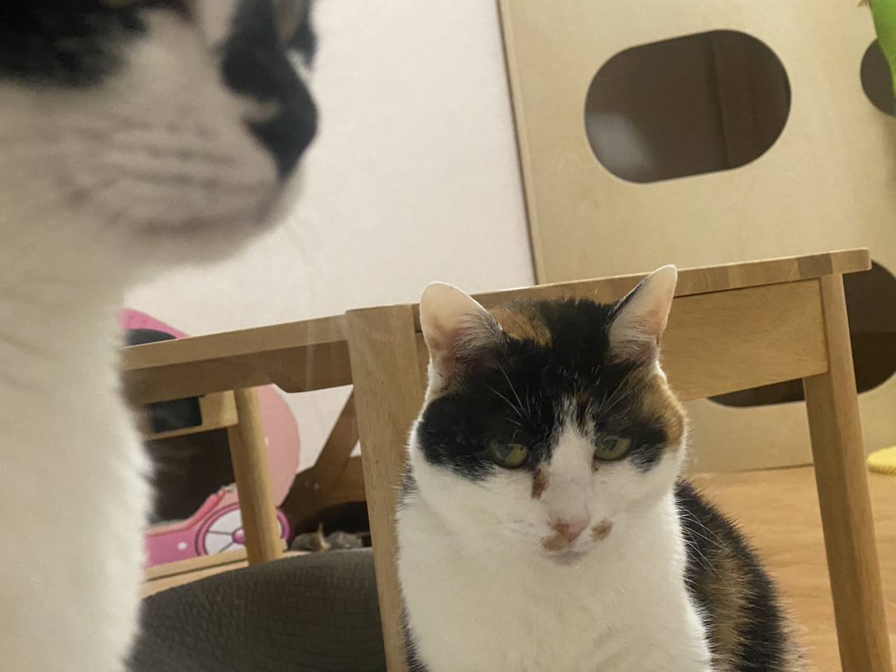 그 시작은 정감자의 부동산이다. 앙마송이 탄의 자리에는 그다지 관심을 보이지 않았는데, 유독 치즈태비 정감자 자리에만 눈독을 들였다. 평소에 정감자와 앙마송이 다퉜었기 때문일까? 아무튼 정감자가 어떤 자리를 차지하고 며칠 내내 그 자리에 가면, 앙마송이 정감자의 부동산을 눈여겨보다가 정감자의 옆, 뒤에서 무한히 째리기 시작한다.
