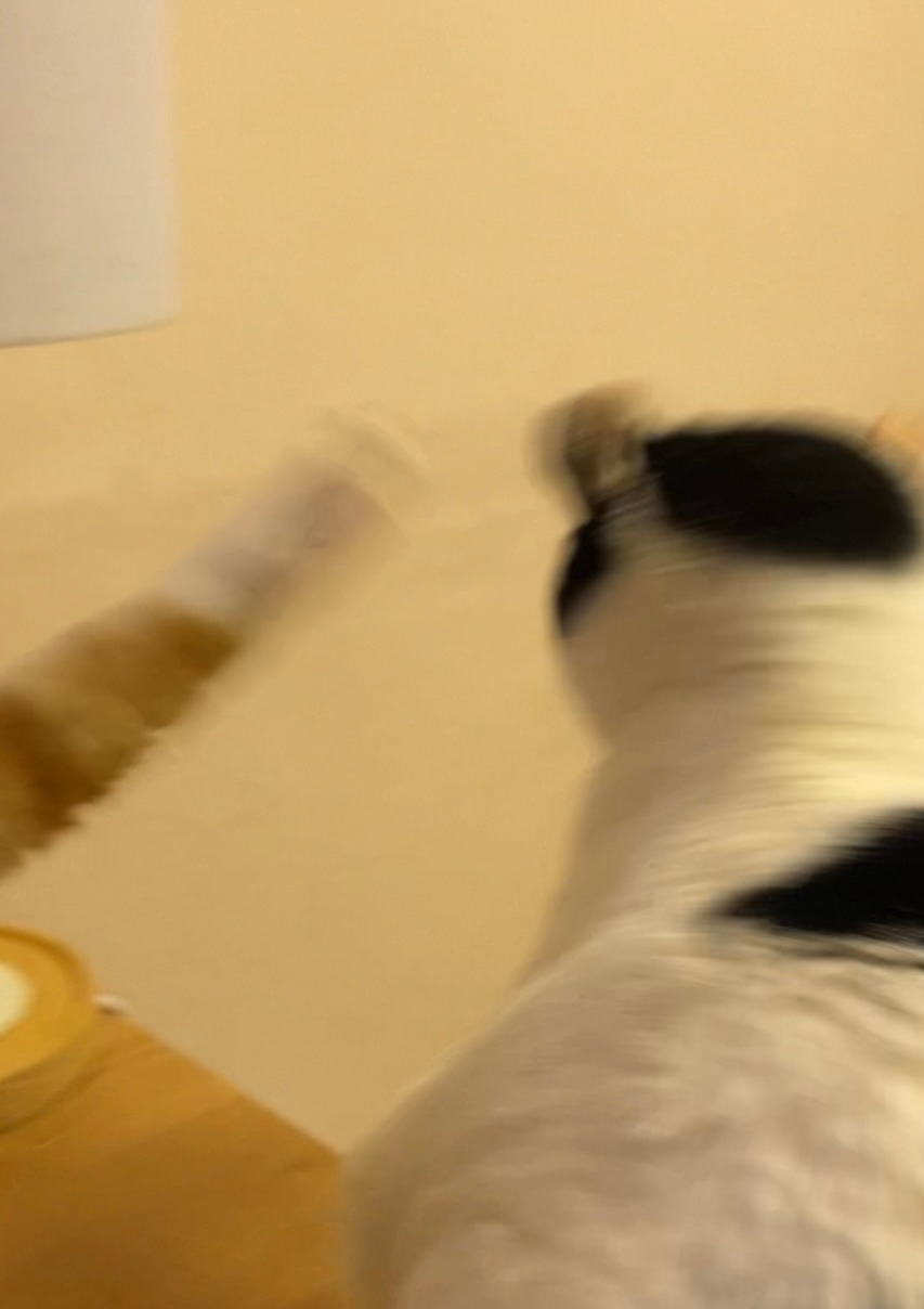 3. 그래도 마음에 안 들면, 소리를 지르며 솜방망이로 때린다. (그러나 다리가 매우 짧은 관계로 헛발질일 때가 많다.)