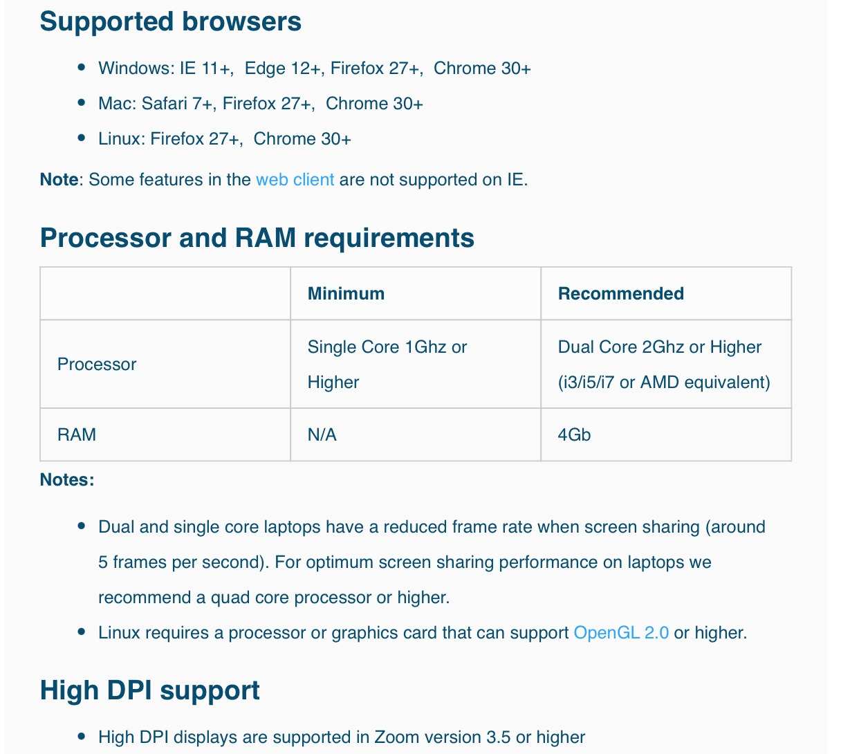 거의 모든 브라우저 종류를 지원하지만 버전 차이는 조금 있다. 눈여겨볼 부분은 CPU와 메모리 요구사항이 듀얼코어 2GHz와 4Gb 이상을 권장한다는 것이다. L모사 그램이란 노트북을 살펴보니 15인치 기준으로 클럭수는 조금 낮지만 코어 개수는 좀 더 많았고, 메모리도 넉넉했다. 노트북 비용도 대략 75만원-100만원 수준이었다. 그룹 영상 수업으로 진행하려면 100만원 정도는 투자해야 한다는 점이다.