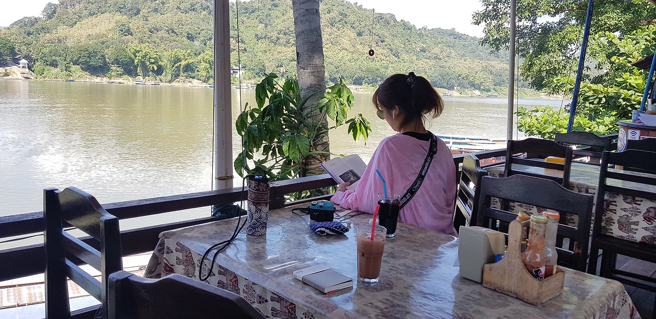 나는 책을 읽으며 여유를 즐기기로 했다. 챙겨는 왔지만 이번 여행에서 한 번도 읽지 못한 책을 펼쳤다. 그런데 바로 눈앞에 있는 메콩강과 살랑살랑 기분 좋은 바람이 자꾸만 독서를 방해하는 거다. 책에 집중하려 해도 자꾸만 눈을 돌려 강 쪽을 바라보고 싶었다. 결국엔 몇 장 읽지도 못하고 책을 덮어버리고 말았다.