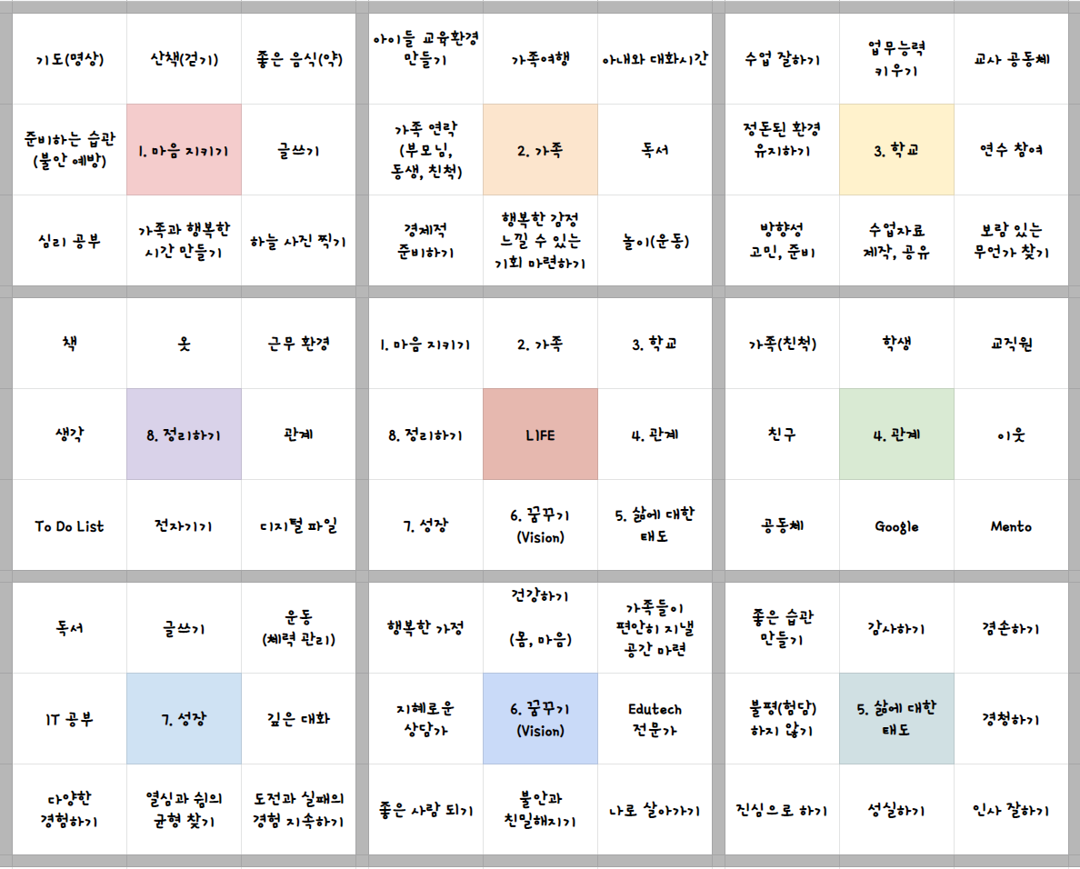 이 때 당시의 마음가짐이 내가 책을 쓰는 데에도 좀 더 편안하게 삶을 살아가는 데에도 많은 도움을 주었던 것 같다. 새해의 다짐과 만다라트로 세워둔 계획들이 2022년과 2023년 나의 삶을 이끌어 준 것이라 생각한다.