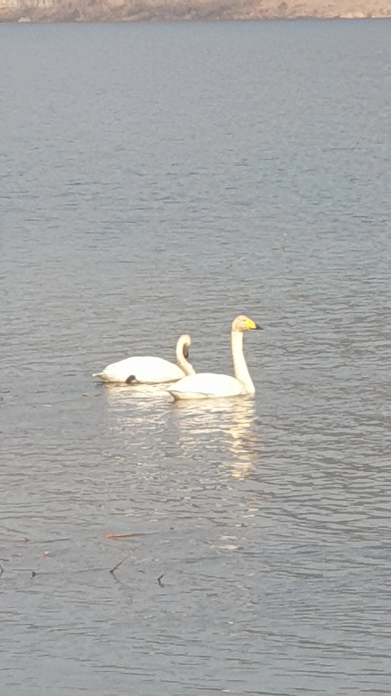 얼어붙은 물 위에 하얀 고니들이 내려앉아 있는 자태. 처음엔 백조인 줄 알았다. 가까이 보니 부리 끝이 노란 고니였다.