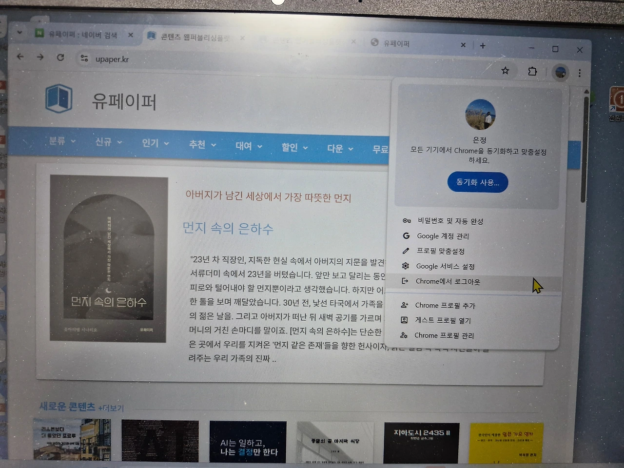 딸이 옆방에서 나와 내 노트북 화면을 들여다봤다.