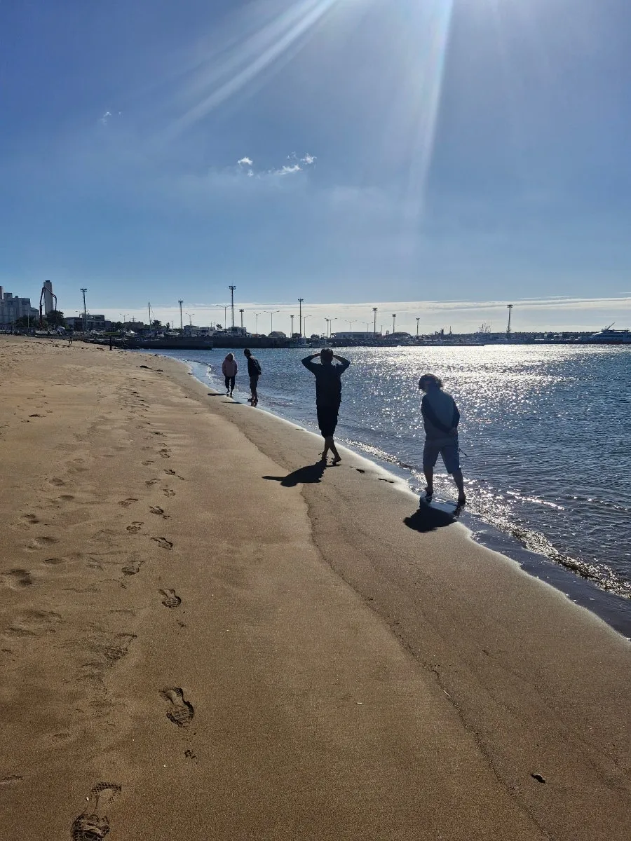 삼방산 아래, 안덕에 있는 화순 금모래해수욕장. 해변에 도착했을 때 가장 먼저 눈에 들어온 것은 맨발로 모래를 밟으며 걷는 사람들이었다. 신발을 벗어 손에 든 채, 발목까지 모래에 묻히며 천천히 걸어가는 사람들. 파도가 밀려왔다 물러갈 때마다 발자국이 지워지고, 또 새로운 발자국이 찍혔다.