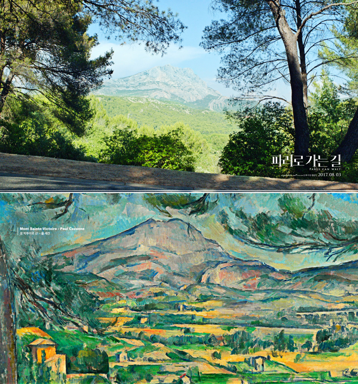 영화 '파리 가는 길'은 칸에서 파리까지 앤(다이앤 레인)을 빠르게 모셔다 주면 끝나는 영화다. 하지만 운전을 맡은 프랑스인 자크는 최단거리가 아닌 놓치면 안 될 숨은 명소로 그녀를 완행열차 속도로 안내한다. 달리는 차창 너머로 '생 빅투아르 산'이 보이자 관객도 함께 설렜을 거다. 세잔의 그림 속 '생 빅투아르 산'이 바로 그곳에 있는 거다. 오베르 쉬르 우아즈가 고흐와 한 몸인 것처럼 생 빅투아르산과 세잔은 한 몸이다.