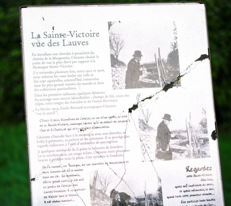 생 빅투아르 산 전망대에 생전에 세잔이 이곳에 와서 산을 바라보며 그림을 그리던 모습이 담겨있다.