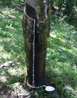고무나무 수액을 채취하는 과정